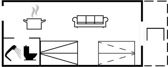 2 slaapplaatsen in tweepersoonsbed. 2 slaapplaatsen in slaapbanken (tweepersoons).