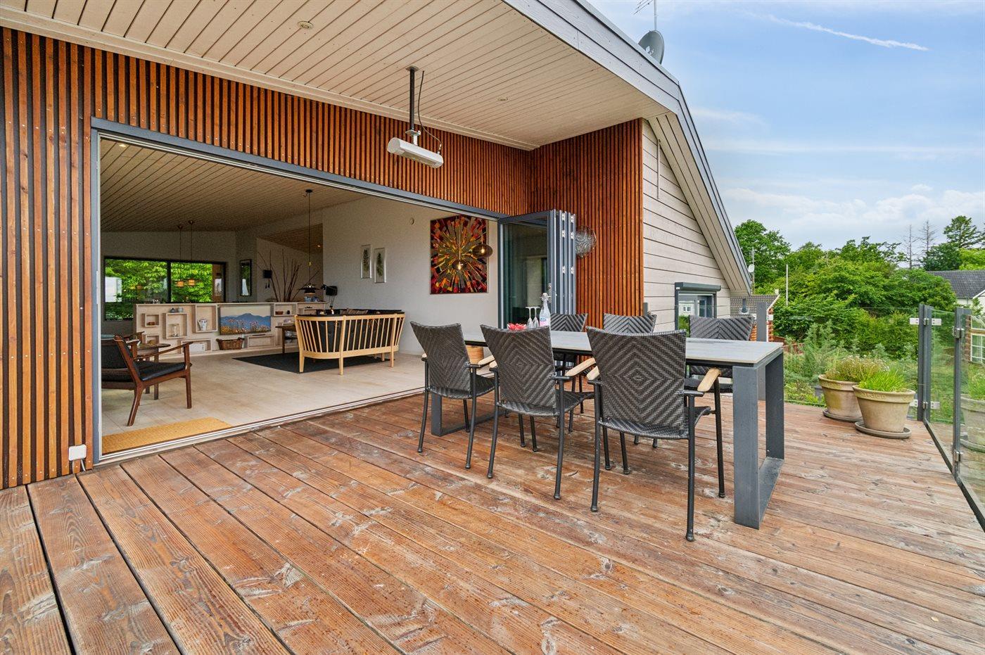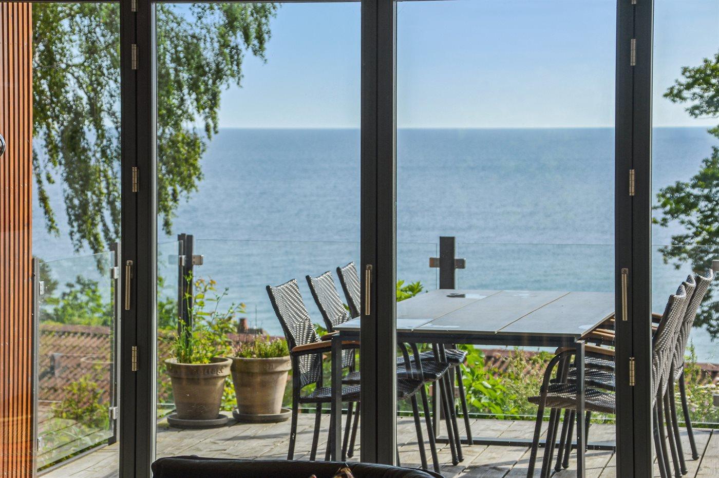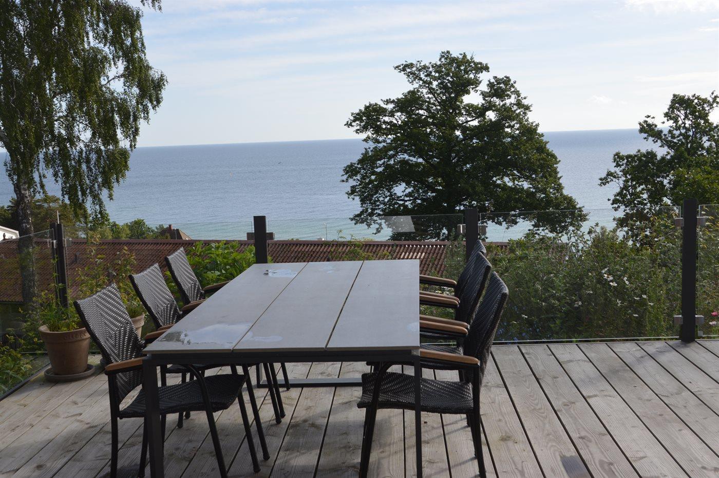 Modern vakantiehuis in Allinge, Denemarken, met zeezicht, ruime terrassen en luxe voorzieningen voor een ontspannen verblijf.