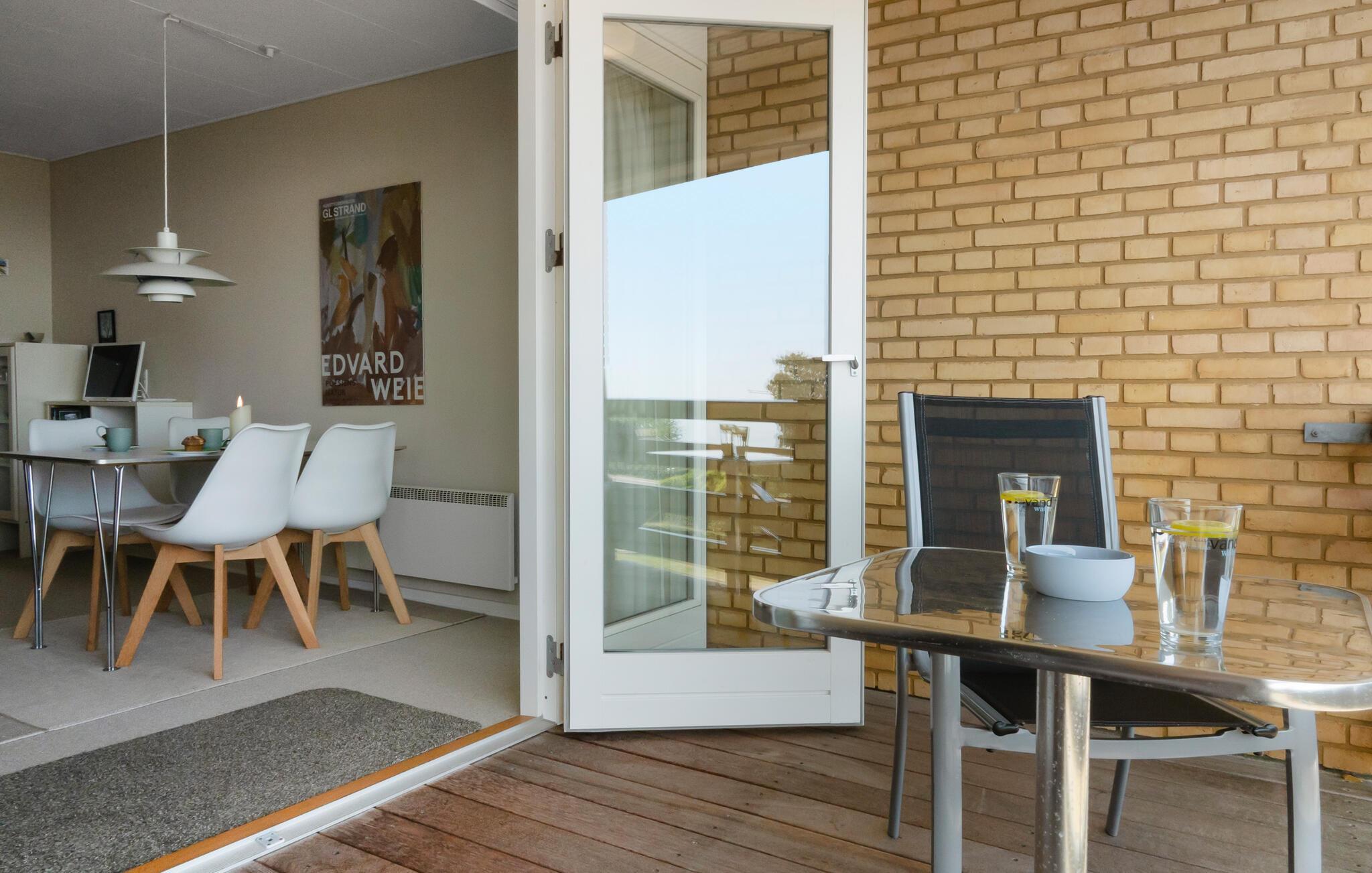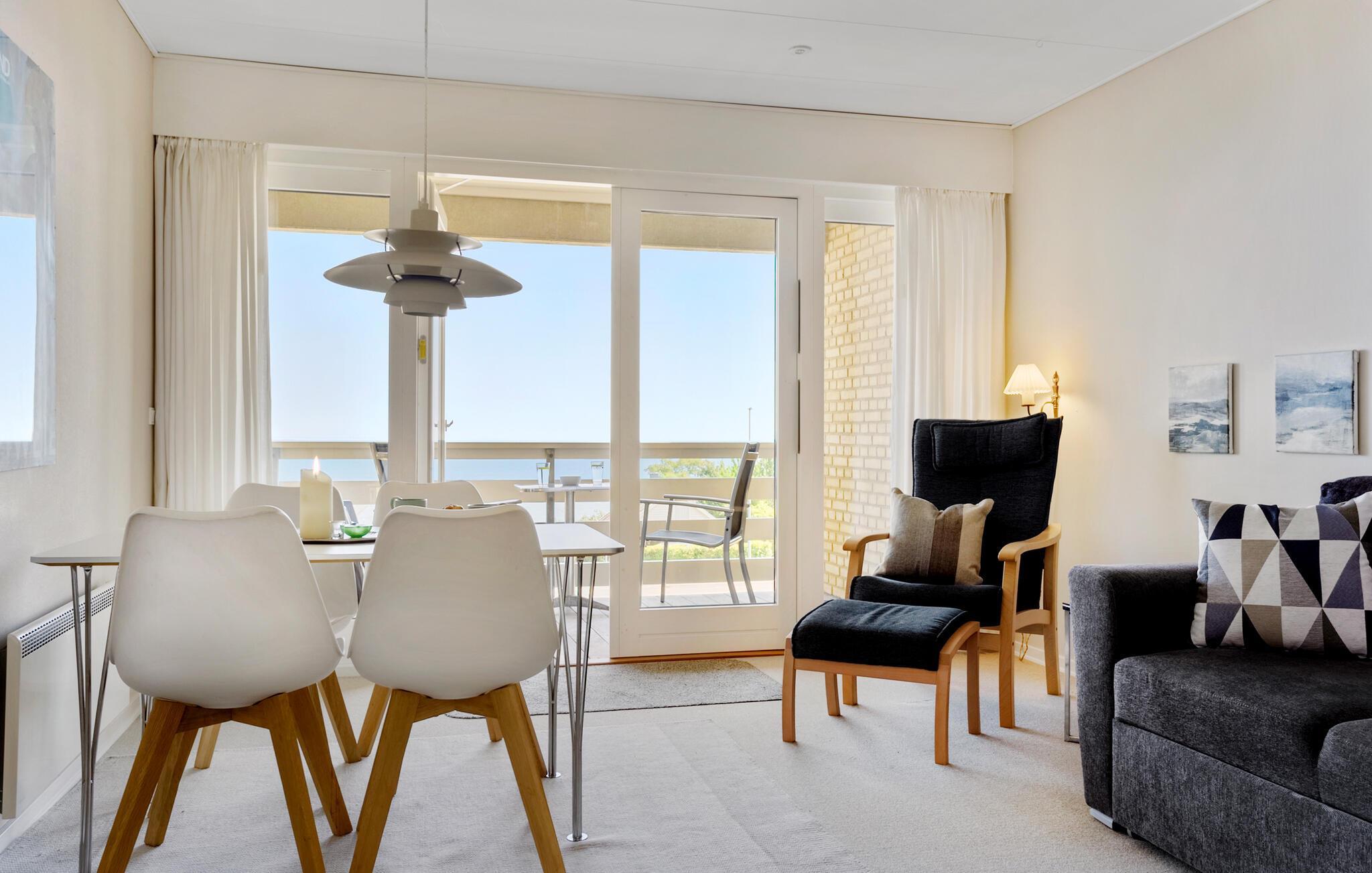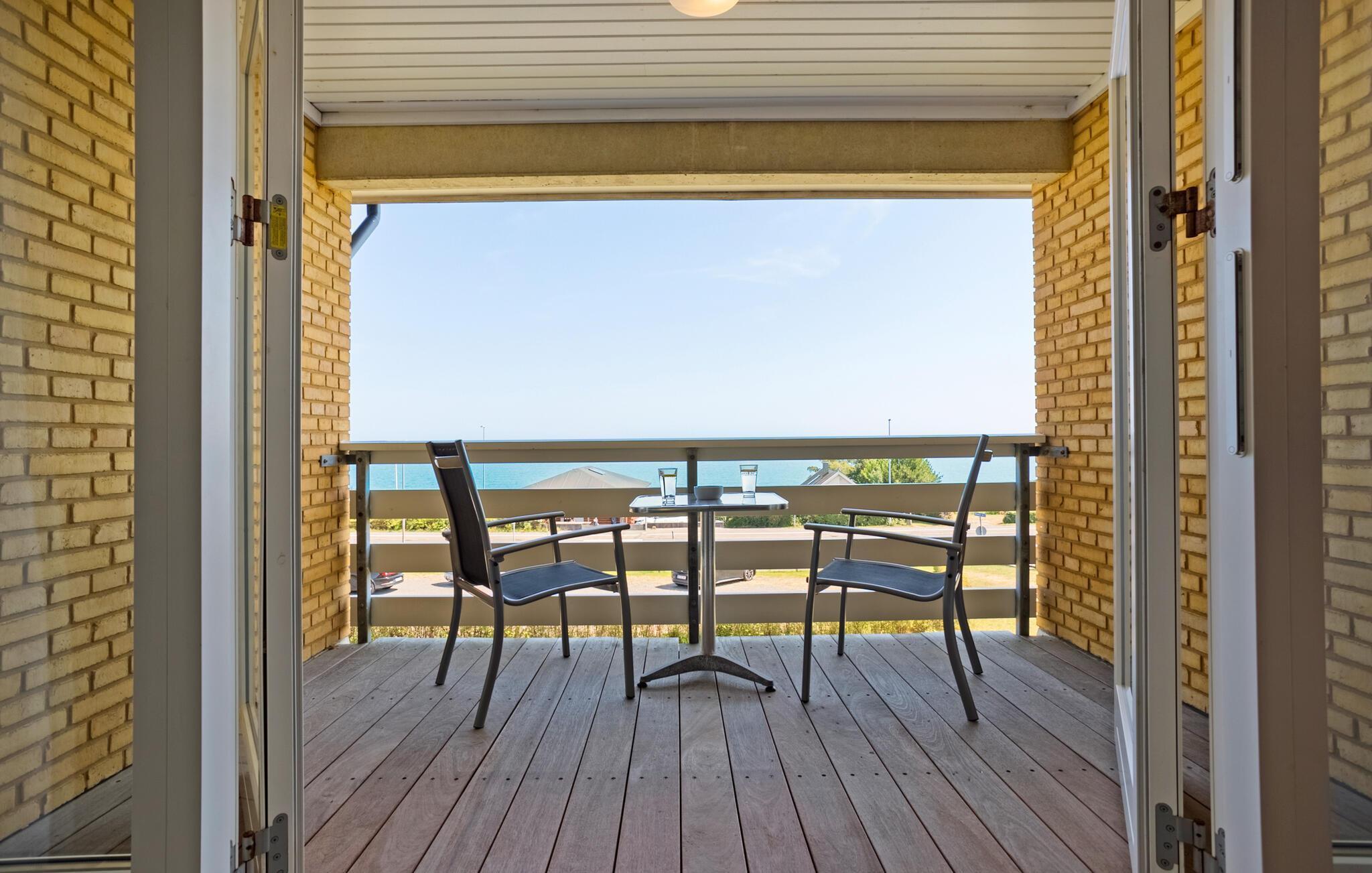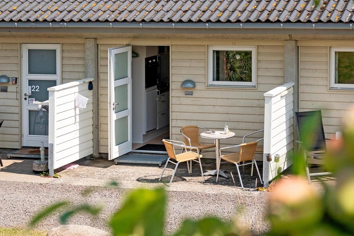 Comfortabele studio met zeezicht en terras in Sandkaas, Bornholm, ideaal voor ontspanning en avontuur.
