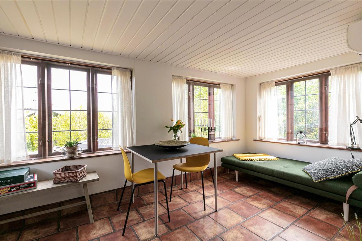 Er is een klein meertje/stroompje in de mooie heuvelachtige tuin. Niet ver weg ligt het populaire strand Lille Sandkås, dat u in de zomer vele uren zwemplezier en strandontspanning belooft. Goede fietspaden in de omgeving, die vrij heuvelachtig en zeer charmant is. Er zijn restaurants in de buurt.