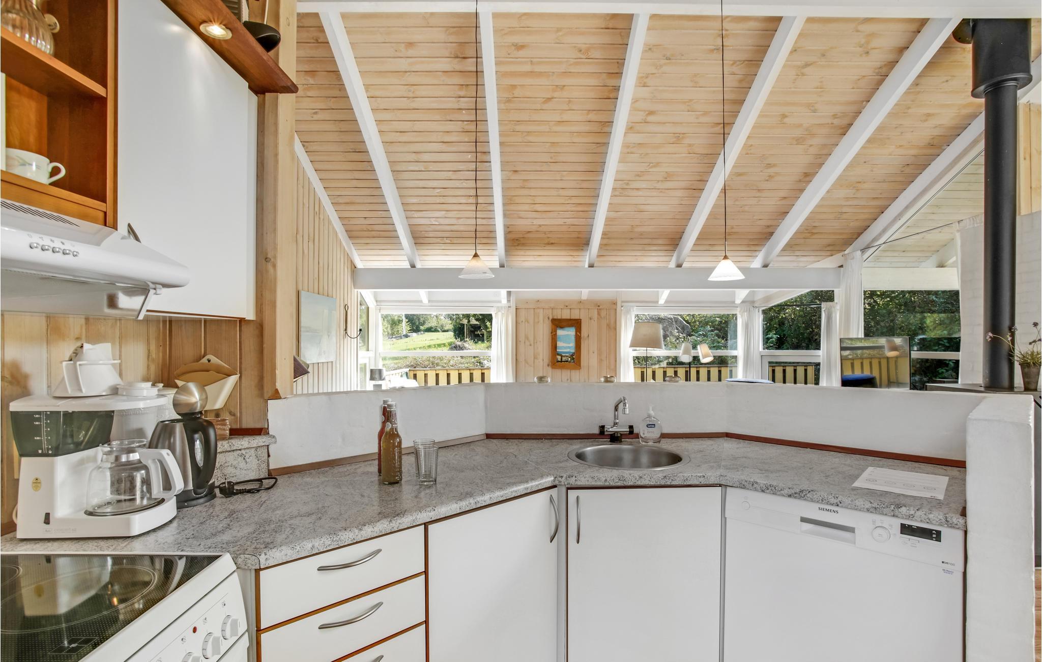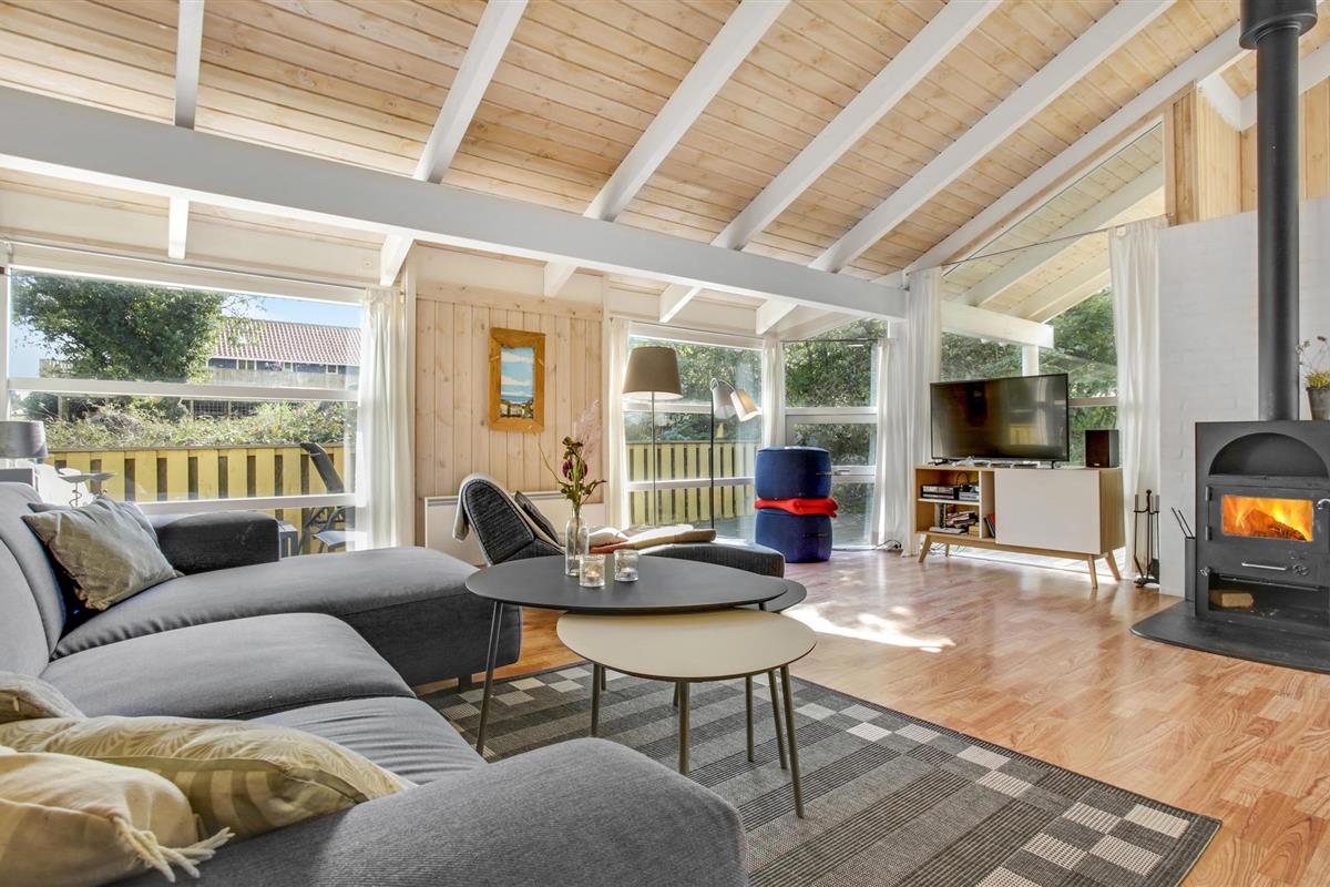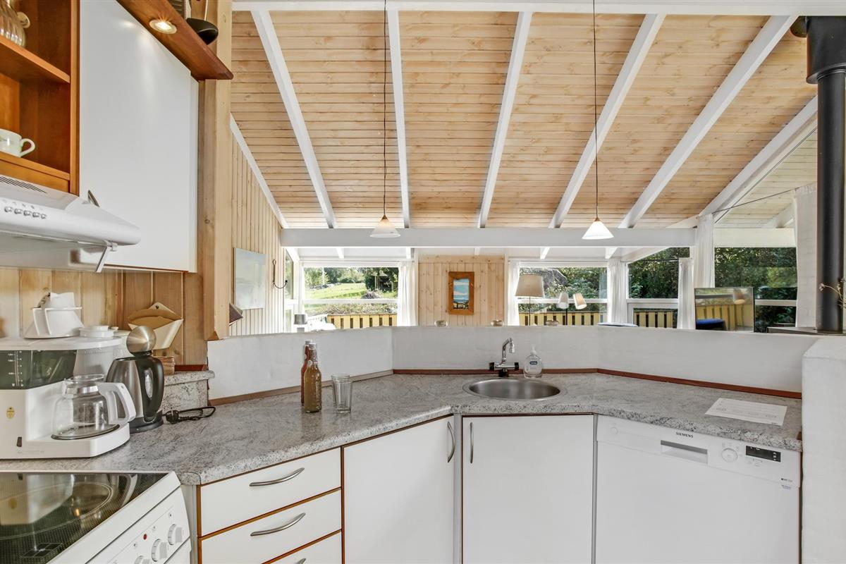 Dit nieuwere kwaliteitshouten huis ligt aan de rand van een zeer populair vakantiegebied in het noorden van Bornholm nabij een rotskust en een goed zwemstrand.