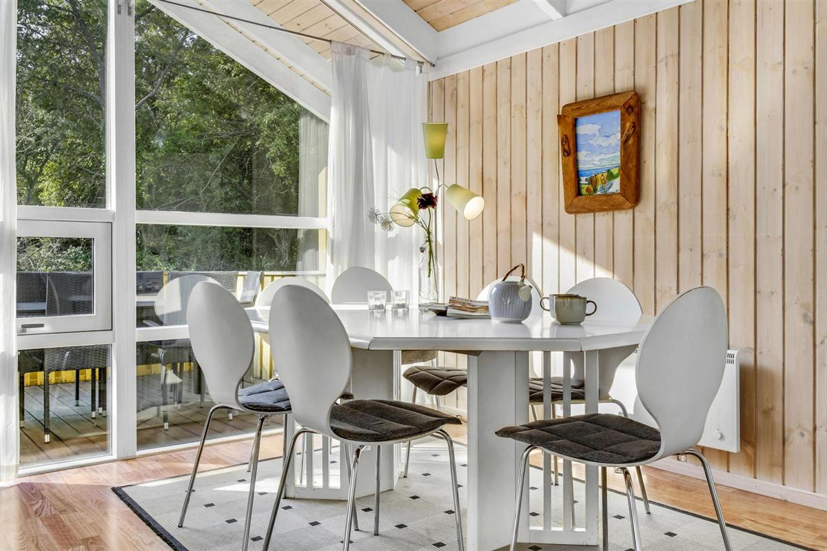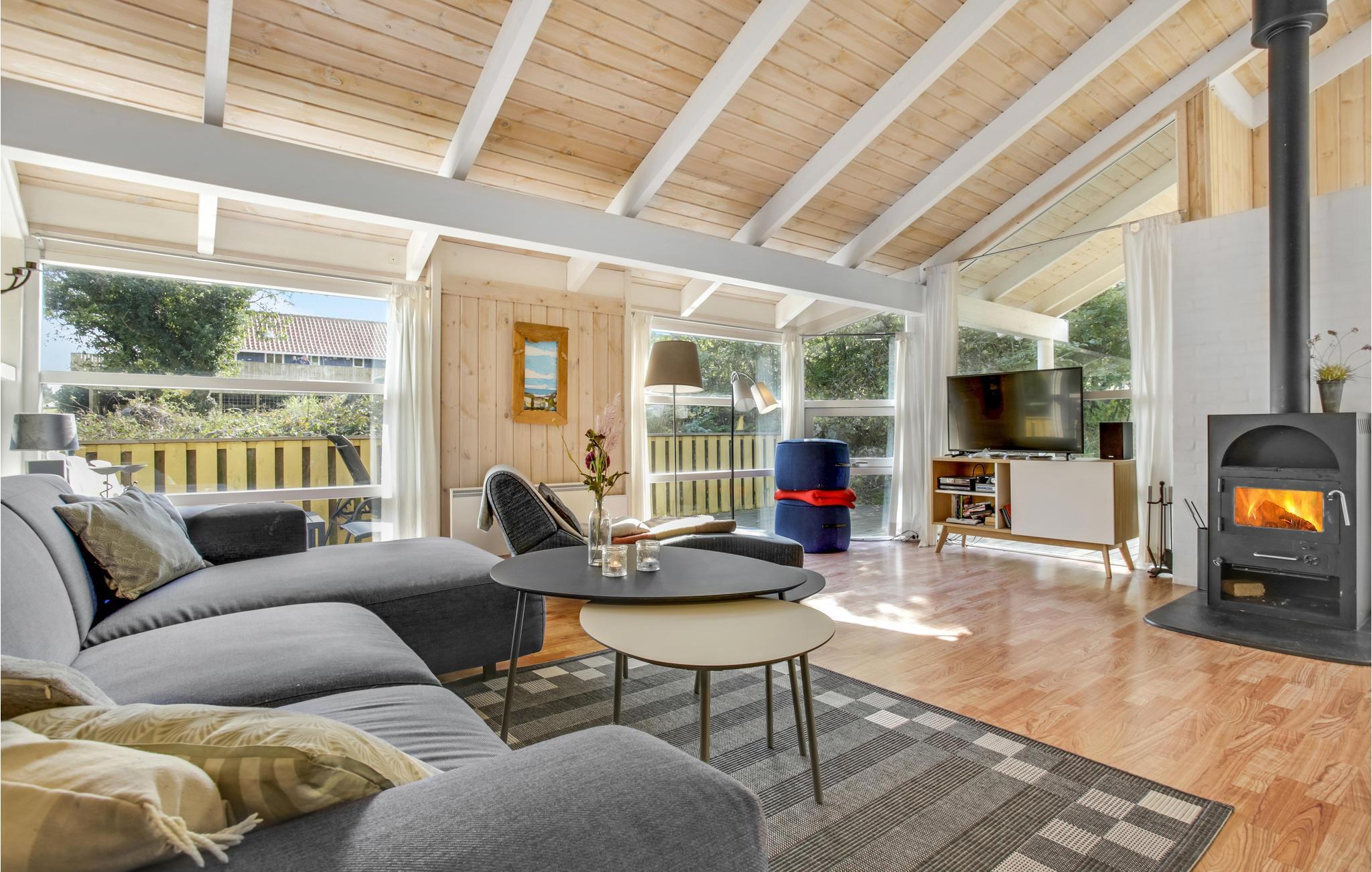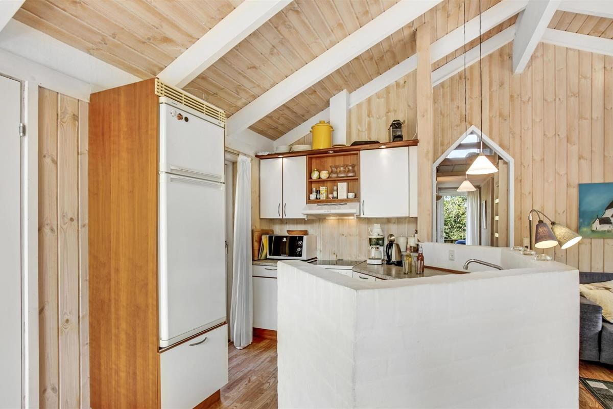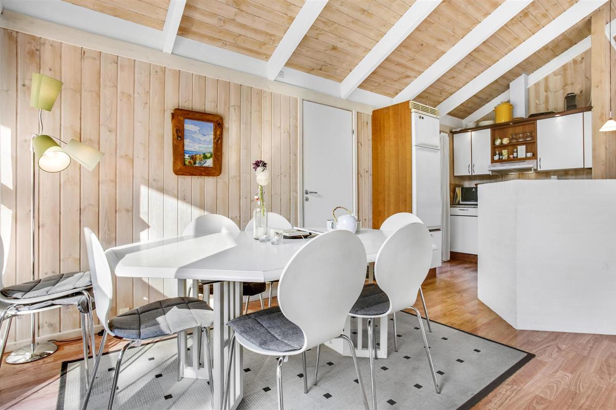 Dit nieuwere kwaliteitshouten huis ligt aan de rand van een zeer populair vakantiegebied in het noorden van Bornholm nabij een rotskust en een goed zwemstrand.