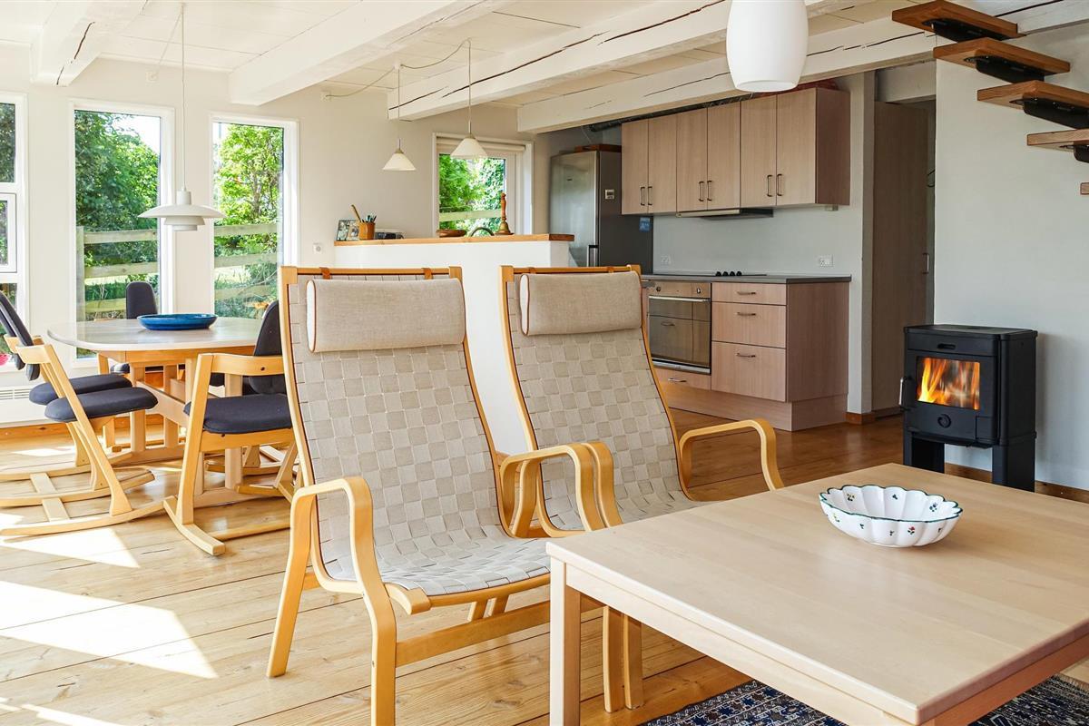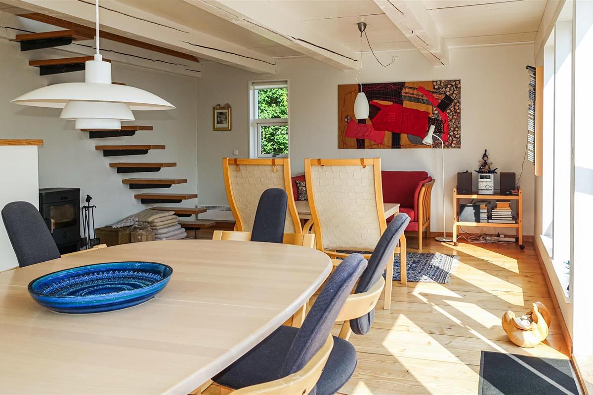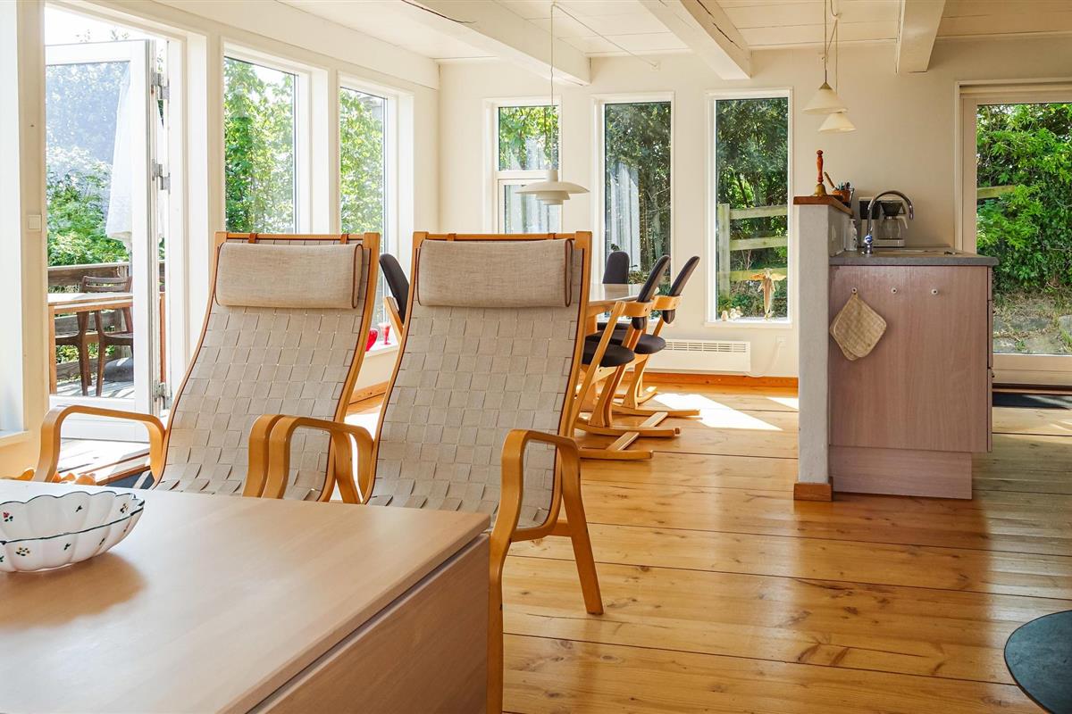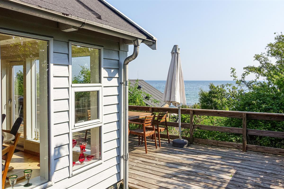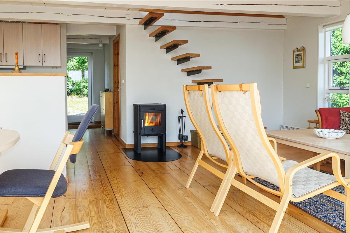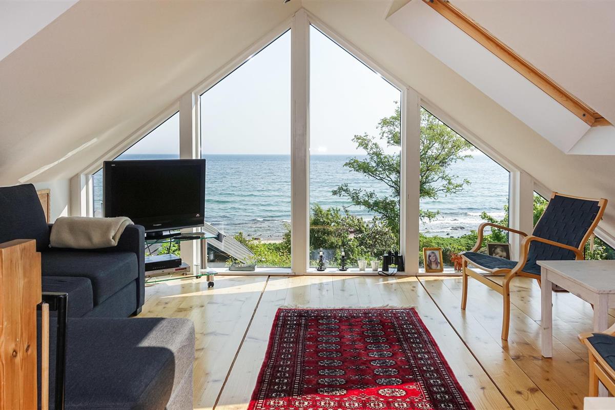 Je woont in Sandkås, bij Tejn, op slechts 50 meter van de zee. Hier vind je een prachtig zandstrand, kliffen en toegang tot het mooie kustpad tussen Allinge en Tejn. Verheug je op een schat aan mooie details, van de elegante trap in de woonkamer tot het prachtige uitzicht op zee. Verwarm de houtkachel op een kille herfstdag of kruip lekker onderuit met een goed boek op de 1e verdieping.
