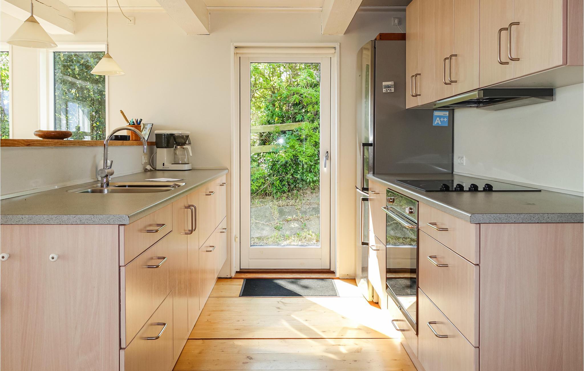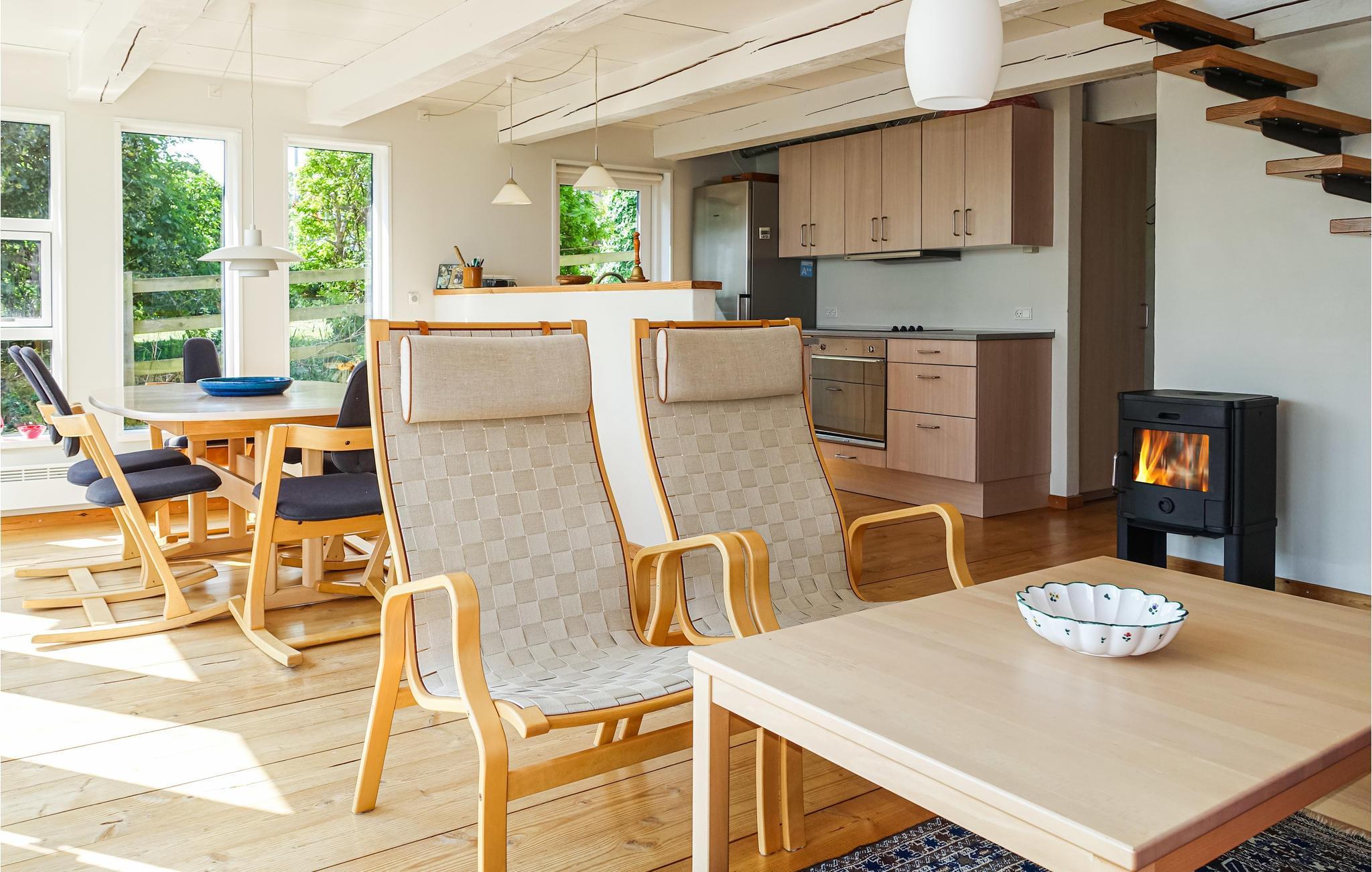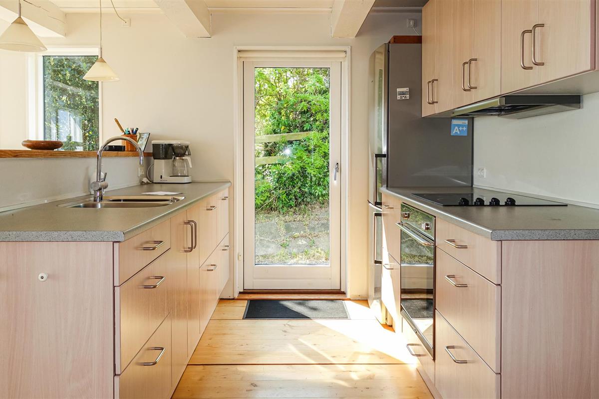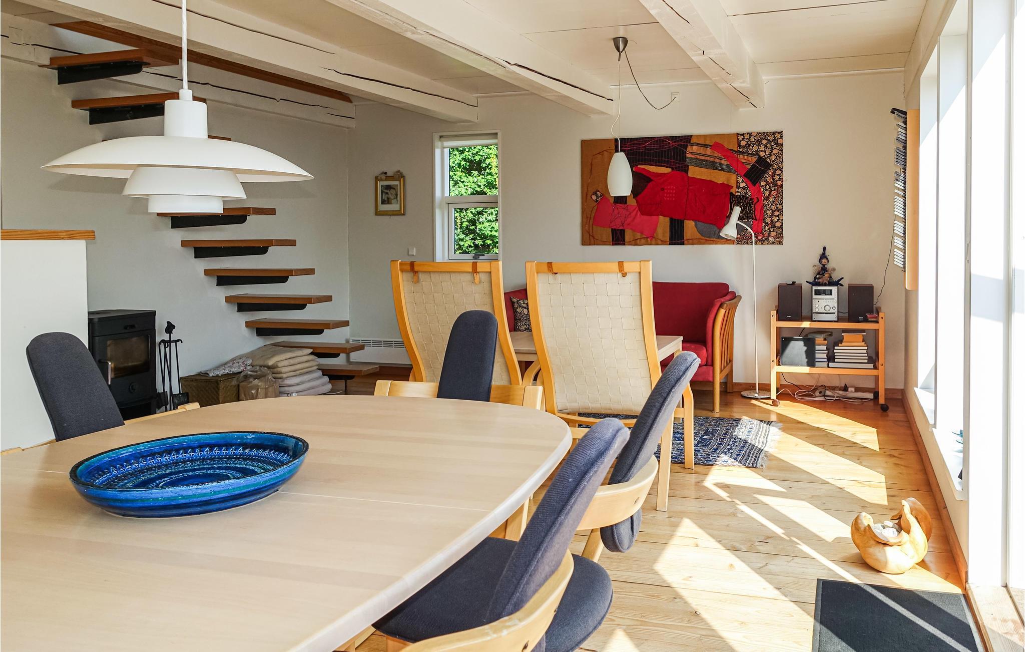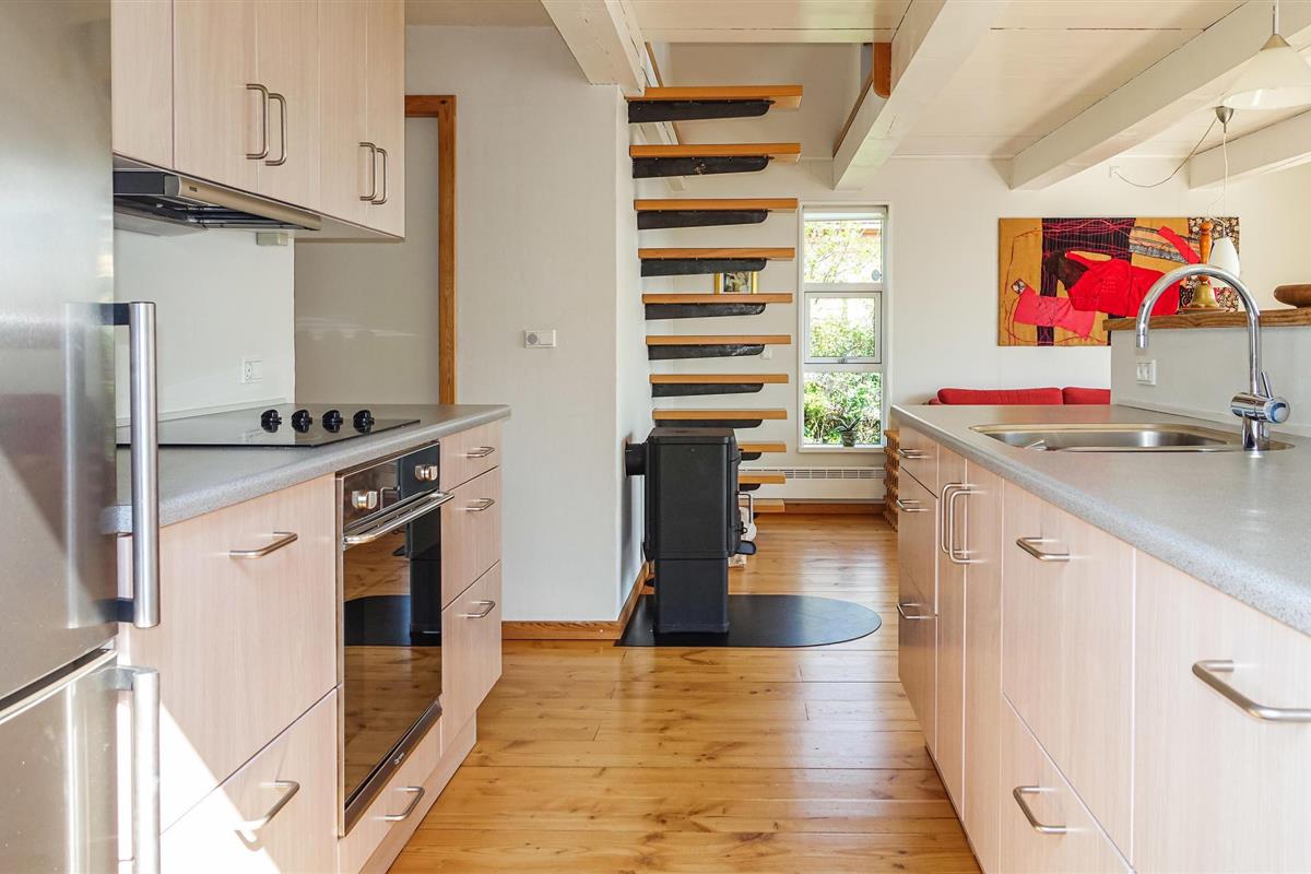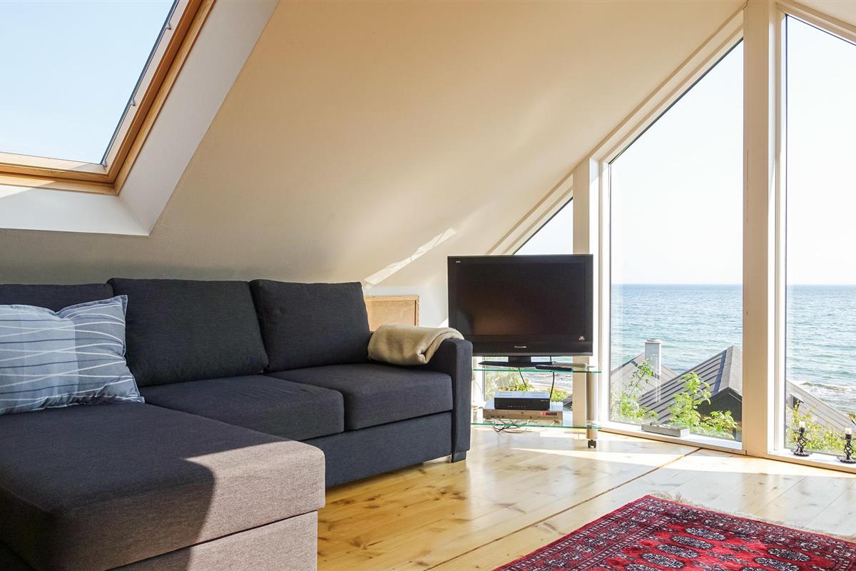 Je woont in Sandkås, bij Tejn, op slechts 50 meter van de zee. Hier vind je een prachtig zandstrand, kliffen en toegang tot het mooie kustpad tussen Allinge en Tejn. Verheug je op een schat aan mooie details, van de elegante trap in de woonkamer tot het prachtige uitzicht op zee. Verwarm de houtkachel op een kille herfstdag of kruip lekker onderuit met een goed boek op de 1e verdieping.