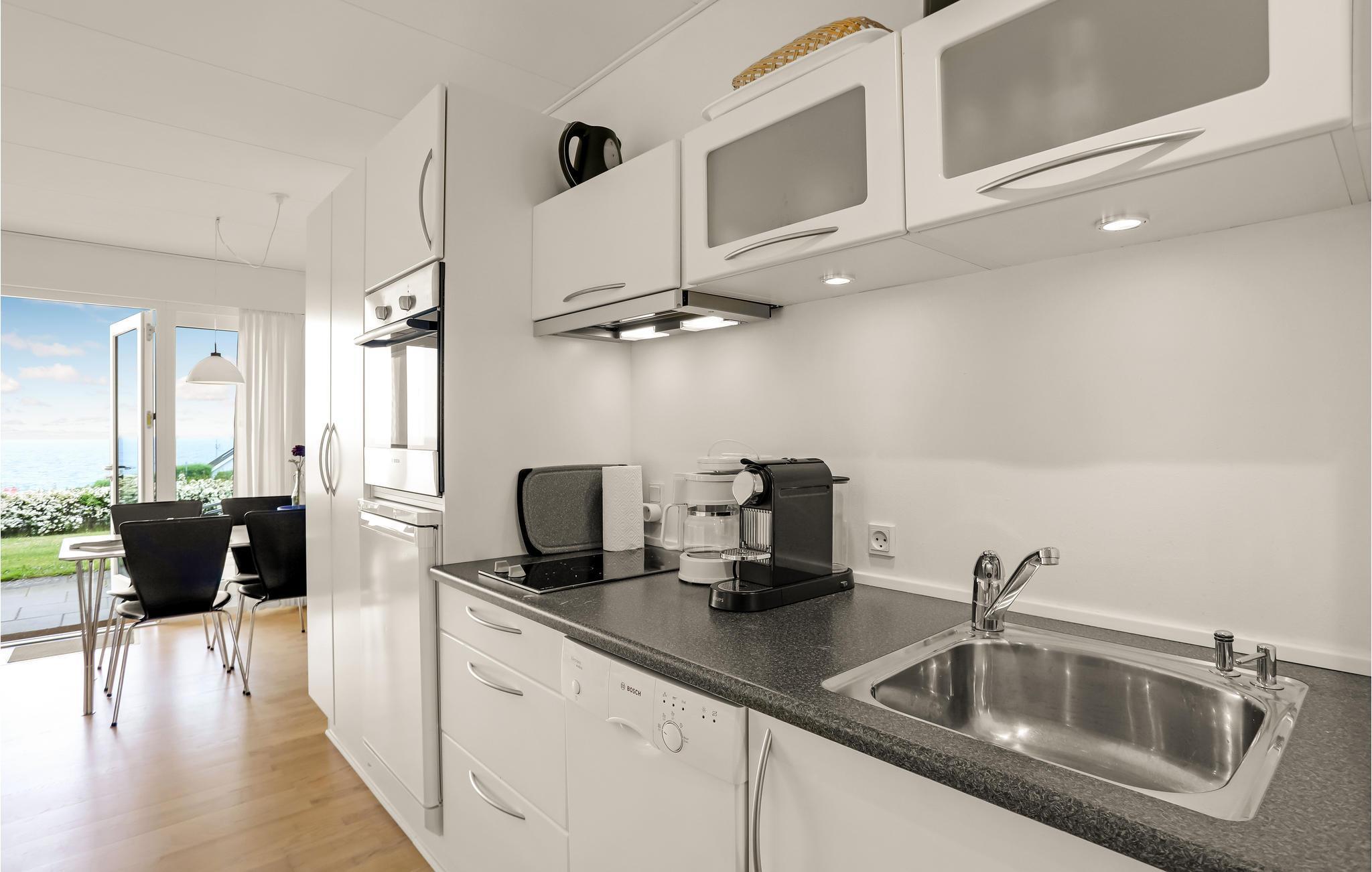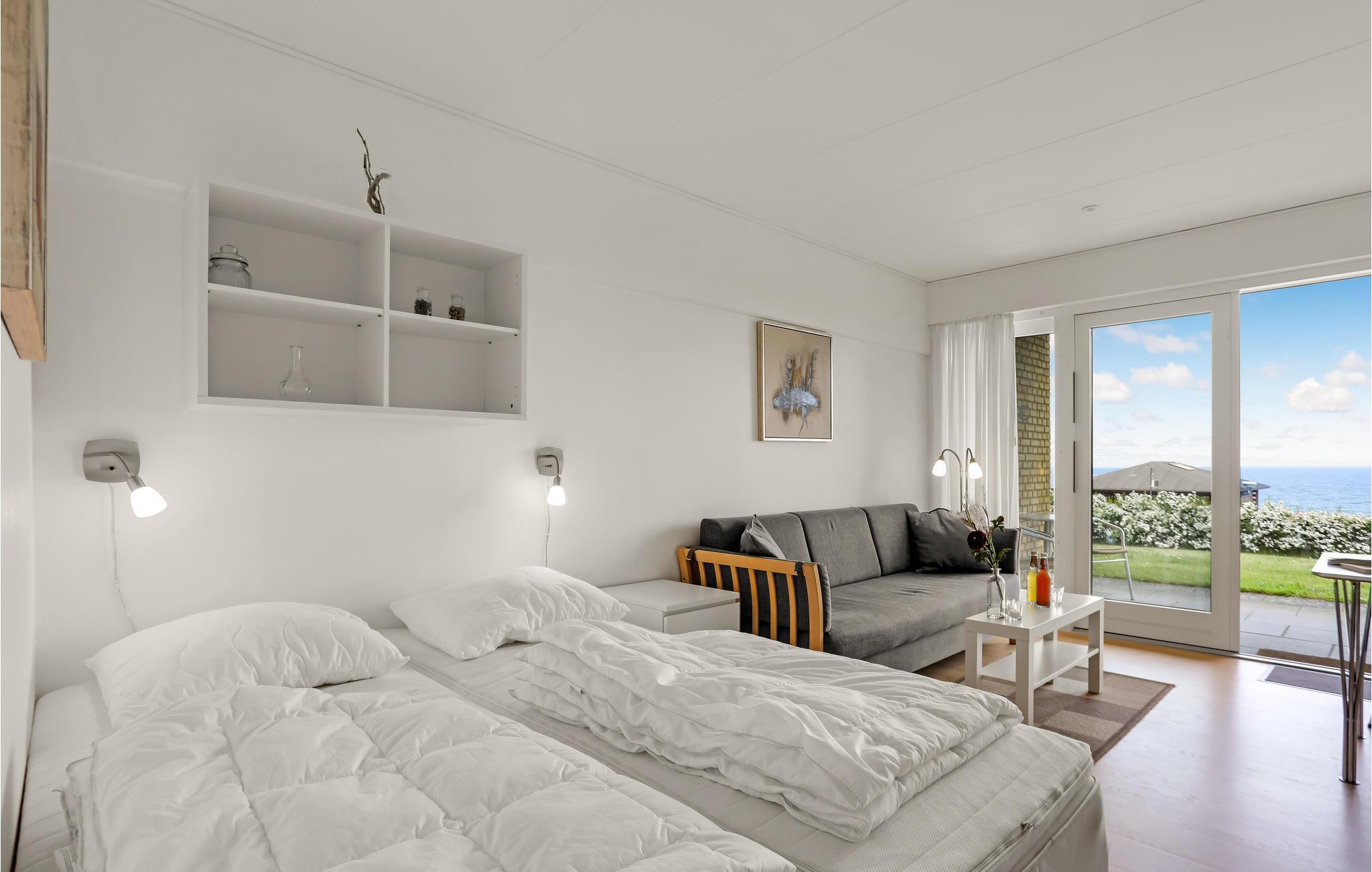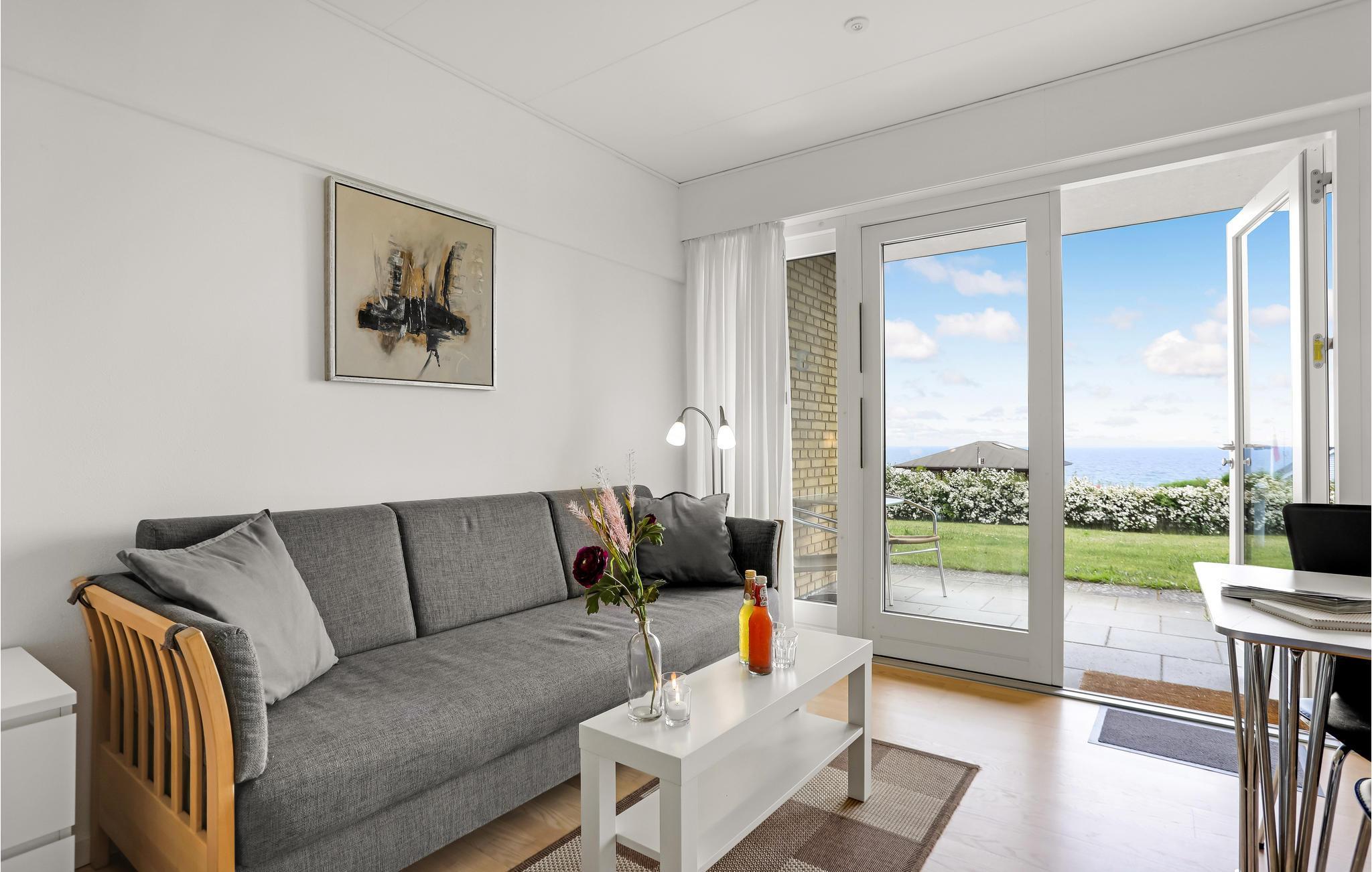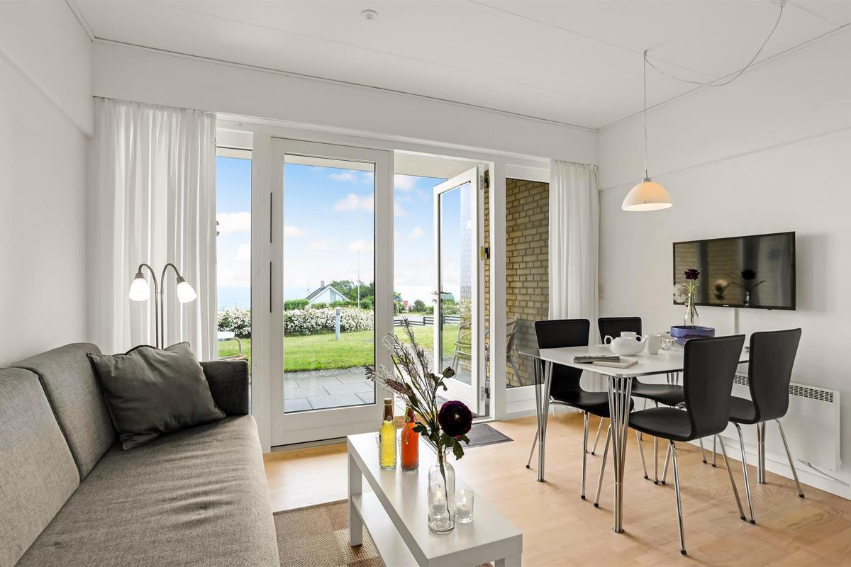 Gezellig appartement met zeezicht en overdekt terras in Sandkås, Bornholm, ideaal voor een ontspannen vakantie met z'n tweeën.