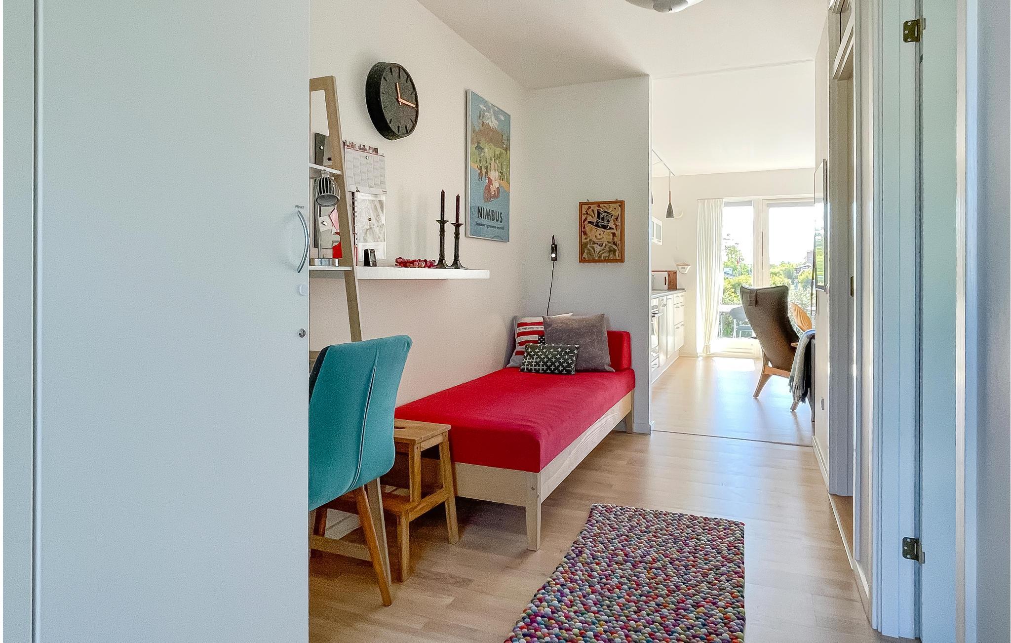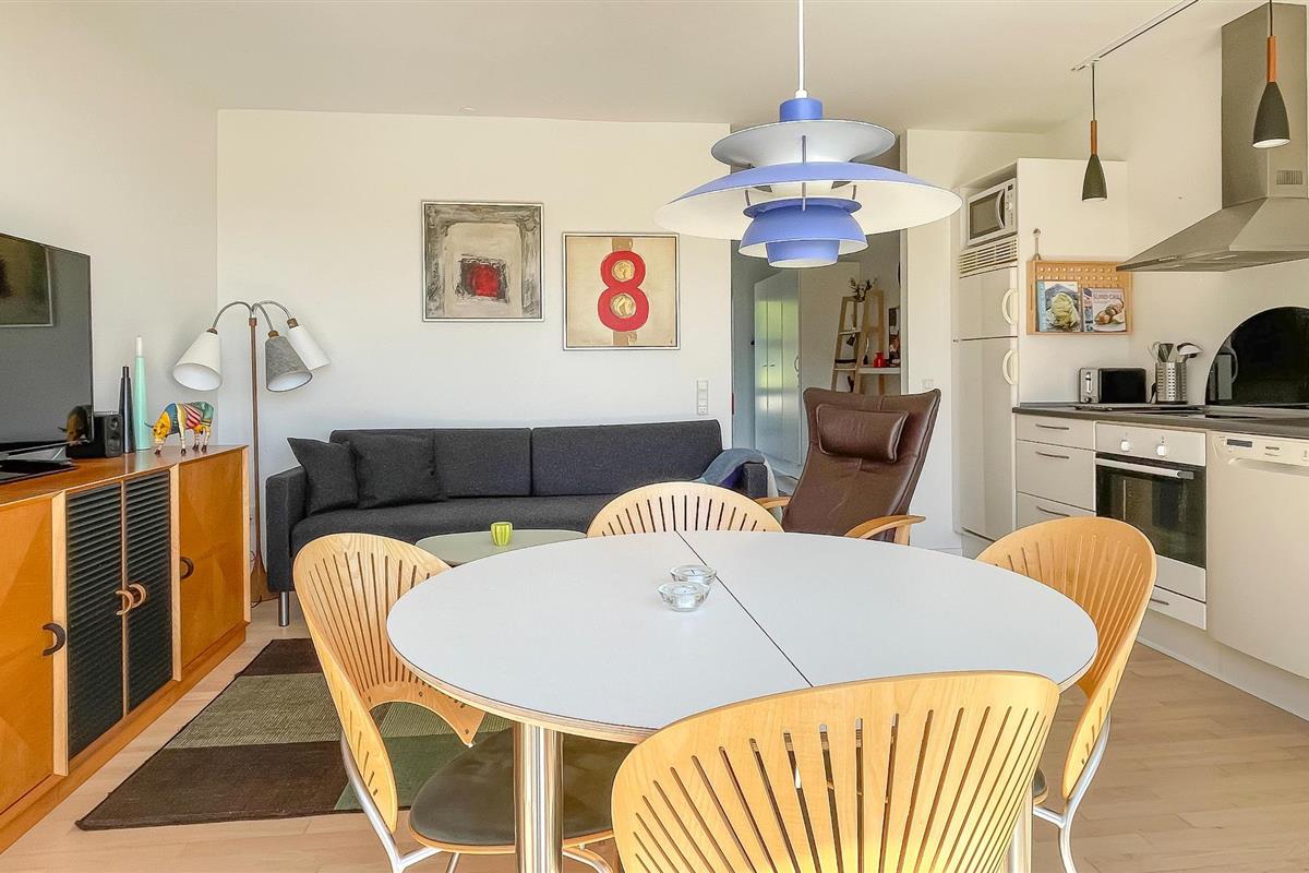 Smaakvol ingericht appartement op 100 m van zandstrand met terras en zeezicht, ideaal voor een ontspannen vakantie op Bornholm.