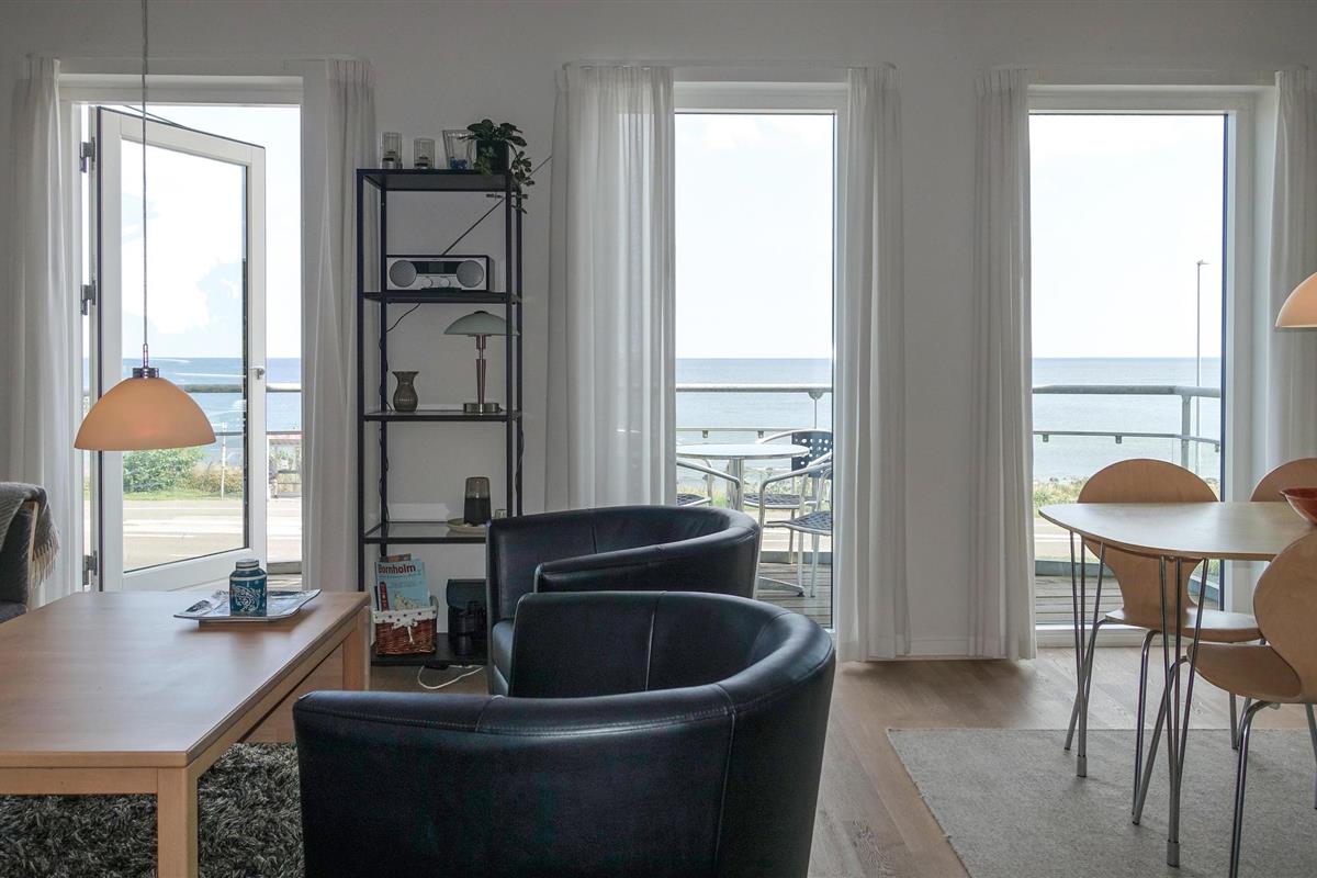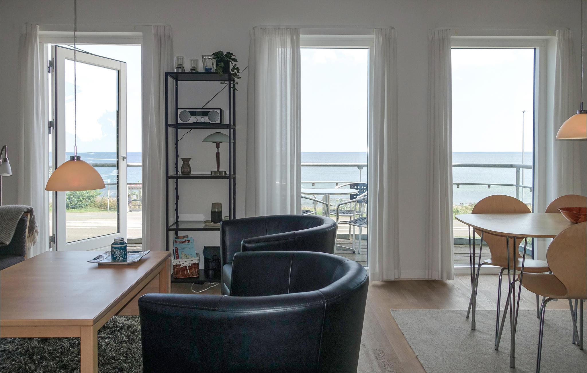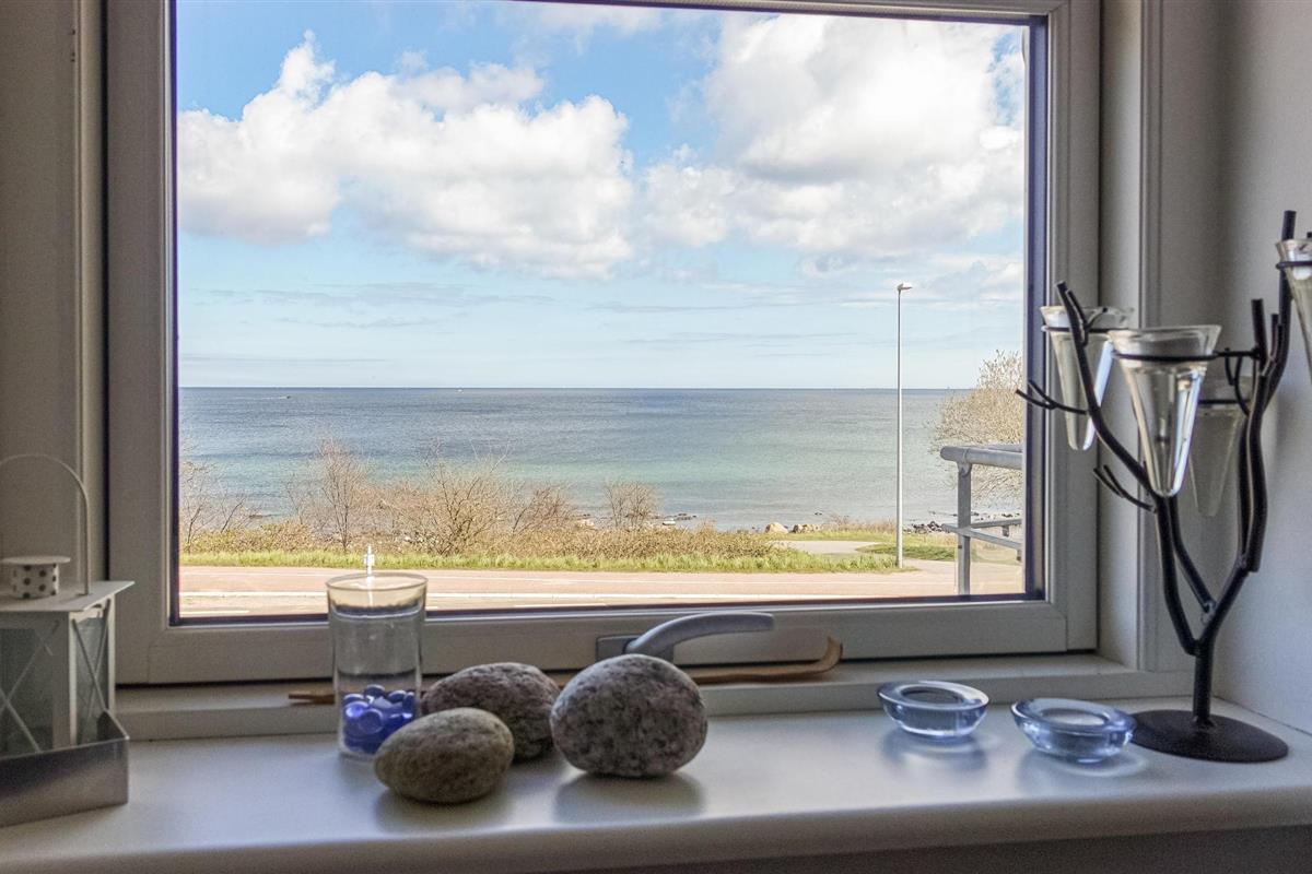Ontdek deze prachtige eerste verdieping ferielejligheid met adembenemend uitzicht op zee, slechts 75 meter van de rotsachtige kust van Nordbornholm.