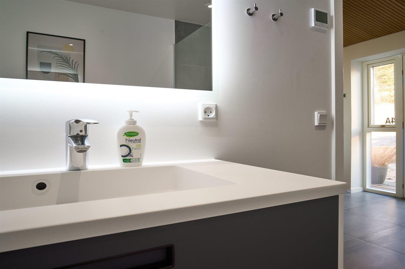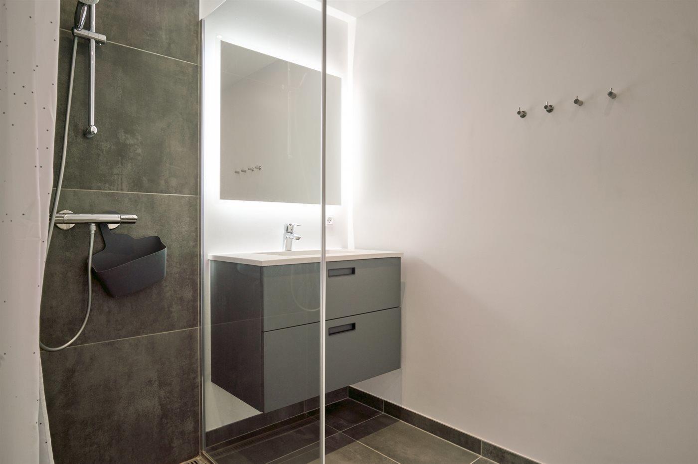 Er is 2 badkamers met douchehok en 2 toiletten. Er is vloerverwarming in 2 van de badkamers.