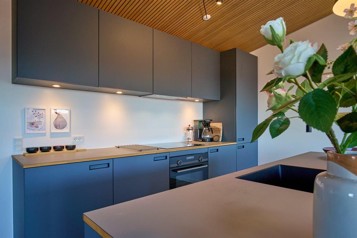 De keuken is uitgerust met koelkast Er is 4 inductiekookplaten, heteluchtoven en vaatwasser.