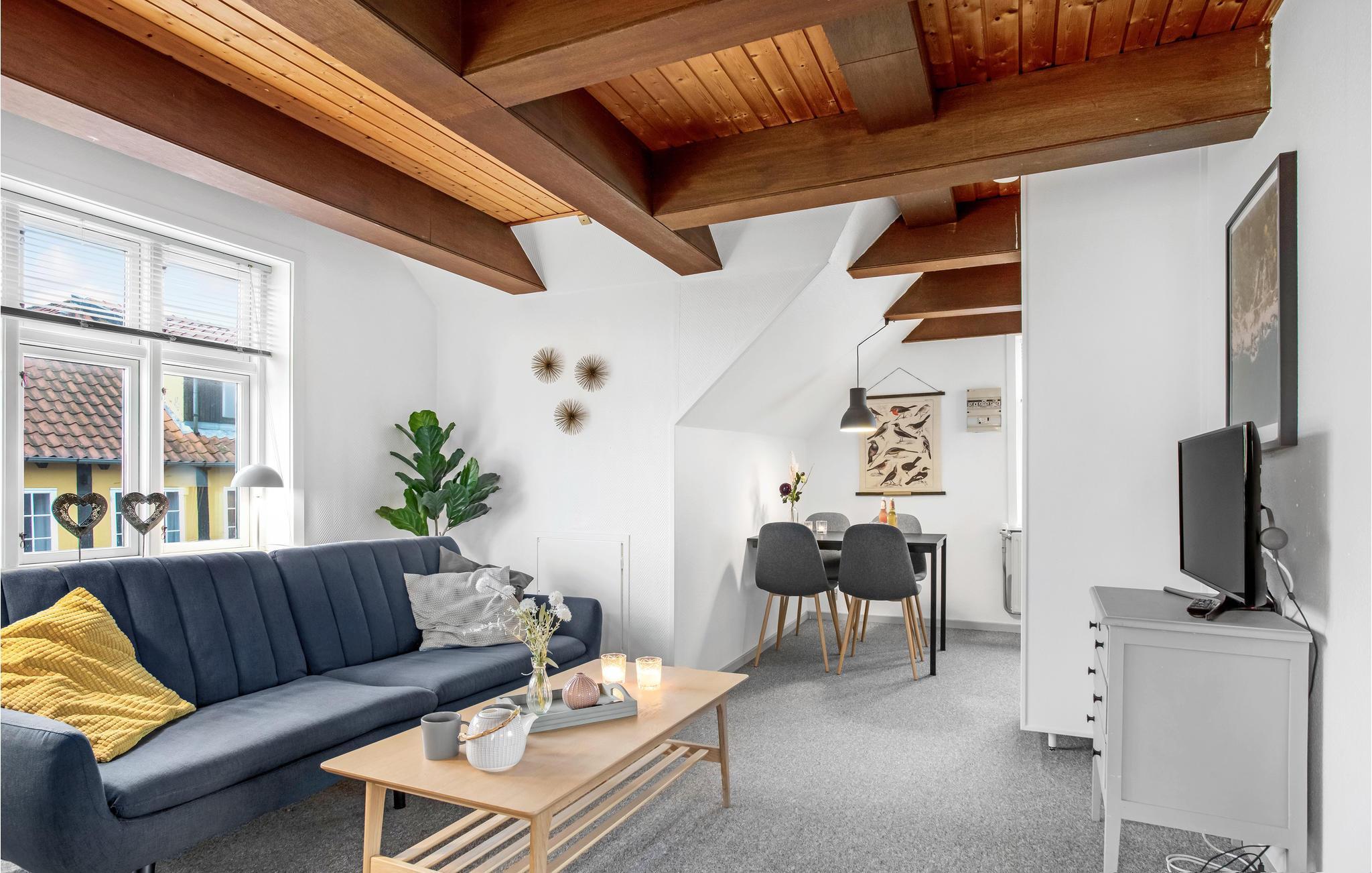 Ontdek dit smaakvol ingericht vakantieappartement met zeezicht in Allinge, Bornholm, op slechts 250 meter van het strand.
