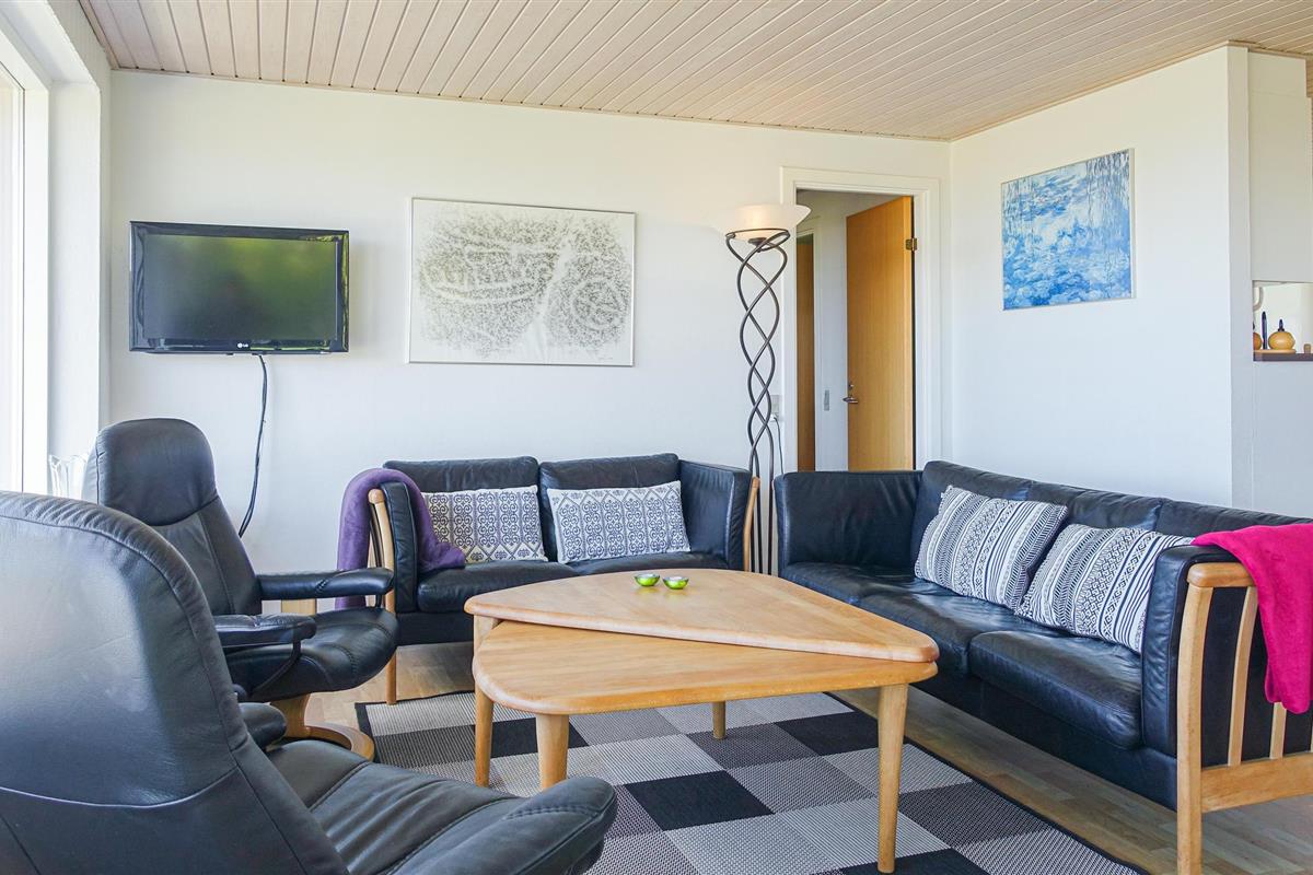 Het hart van het huis is de gezellige woon- en eetkamer met grote ramen waardoor u kunt genieten van het uitzicht op zee. Hier kunt u tv kijken en in de winter genieten van de warmte en de gezellige sfeer van de open haard. In open verbinding met de woonkamer staat de goed uitgeruste keuken.