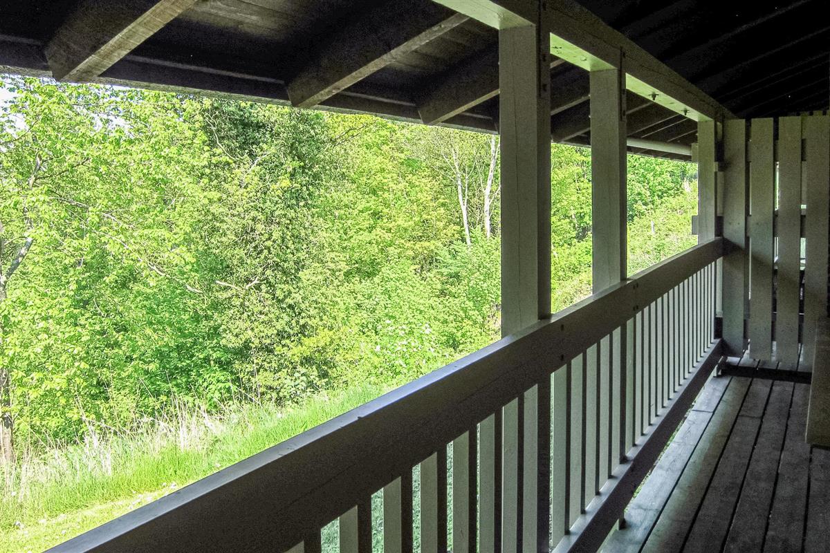 Gezellig vakantieappartement bij natuur en strand op Bornholm, met overdekte terrassen en barbecue.