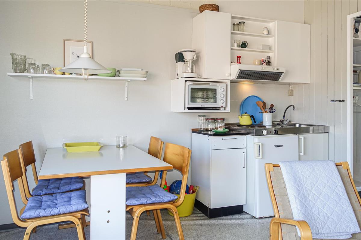 Welkom in dit gezellige vakantiehuis, geschikt voor zowel een stel als een gezin met kinderen. Het hart van het huis is de keuken-woonkamer, waar u kunt ontspannen, tv kijken, naar de radio of muziek luisteren en uw favoriete gerechten kunt bereiden en genieten. De keuken heeft een magnetron en twee kookplaten. In de woonkamer staat een tweepersoonsslaapbank (140 cm).