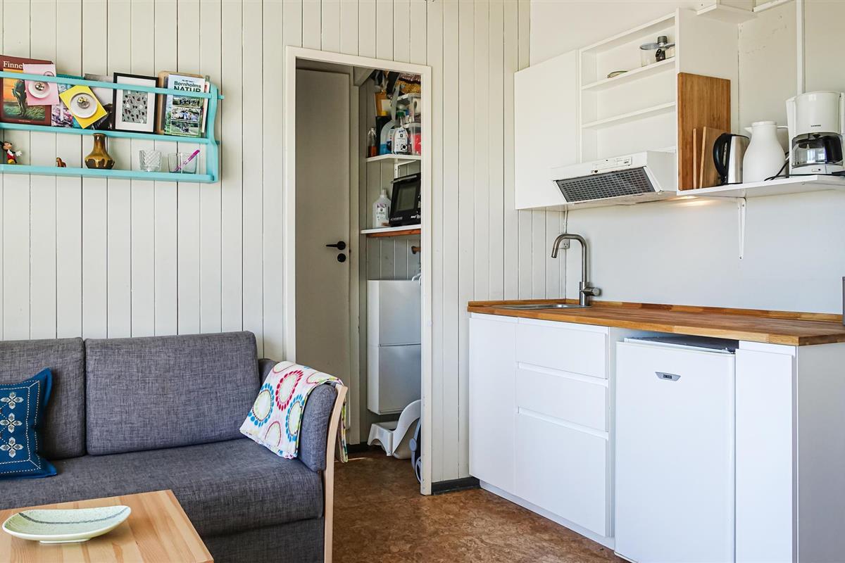 Welkom in dit gezellige vakantiehuis, geschikt voor zowel een stel als een gezin met kinderen. Het hart van het huis is de keuken-woonkamer, waar u kunt ontspannen, tv kijken, naar de radio of muziek luisteren en uw favoriete gerechten kunt bereiden en genieten. De keuken heeft een magnetron en twee kookplaten. In de woonkamer staat een tweepersoonsslaapbank (140 cm).