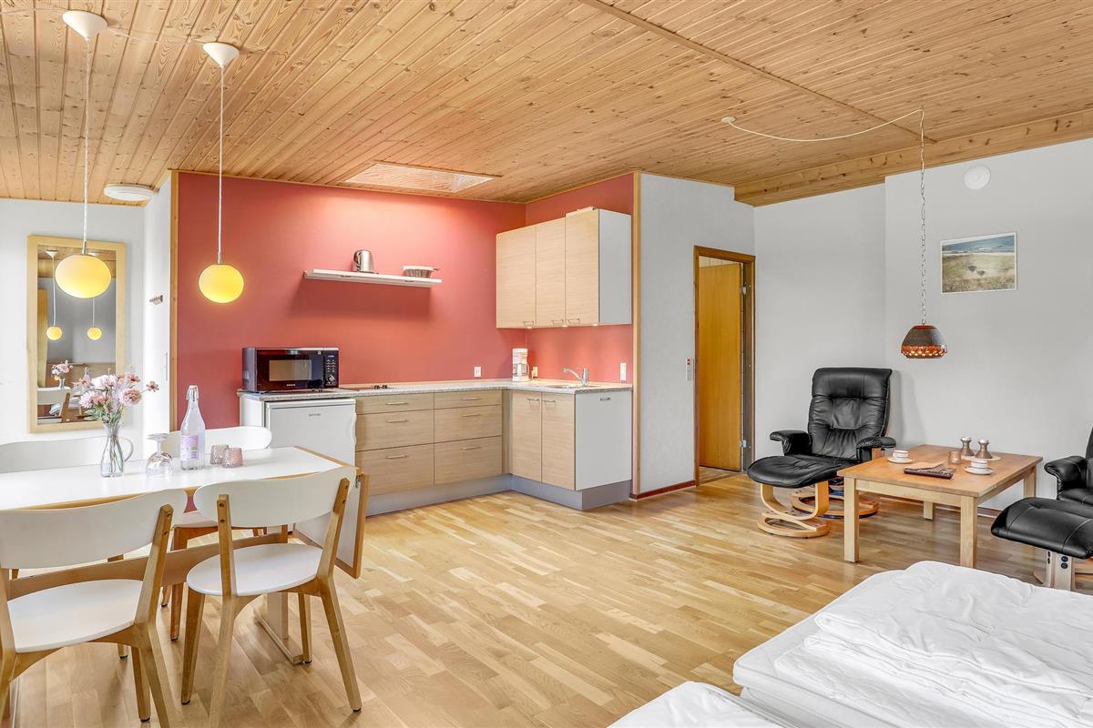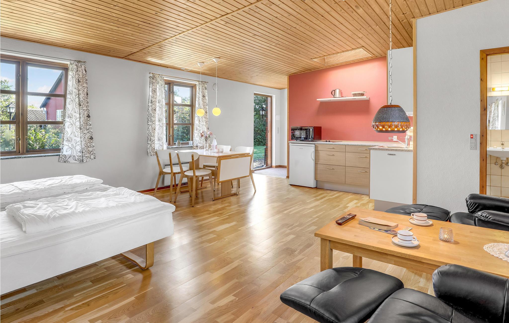 De flats 'Tre Birke Ferielejligheder' liggen zo dicht bij het stadscentrum dat u vanuit de haven bijna de laatste roddels kunt horen. U bent dicht bij goede restaurants en cafés, een midgetgolfbaan, het stadje Allinge, prachtige natuur met wandelpaden en een zandstrand. Ondanks de centrale ligging hebben de flats een ontspannen sfeer waar u gewoon kunt ontspannen, genieten van de zon en de natuur. Deze flat is het meest geschikt voor een stel dat op zoek is naar een ontspannen vakantie. Goede parkeermogelijkheden zijn aanwezig.