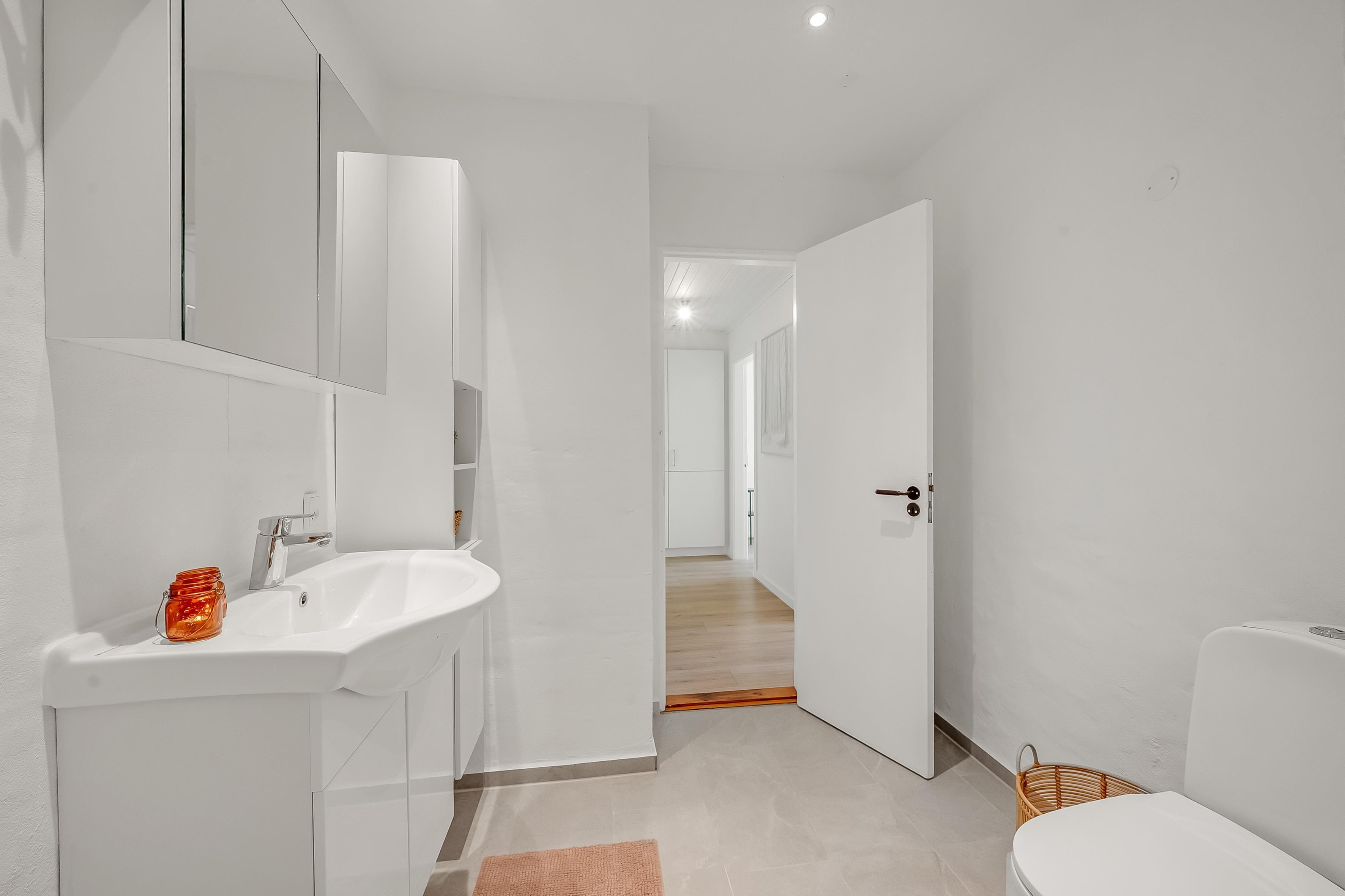 The house has two modern bathrooms, both with underfloor heating, which provides a comfortable experience, especially in winter. Each bathroom is also equipped with a shower, so there is no need to wait in line when it is time to freshen up. There are also two separate toilets, making it easy for everyone to access the facilities.