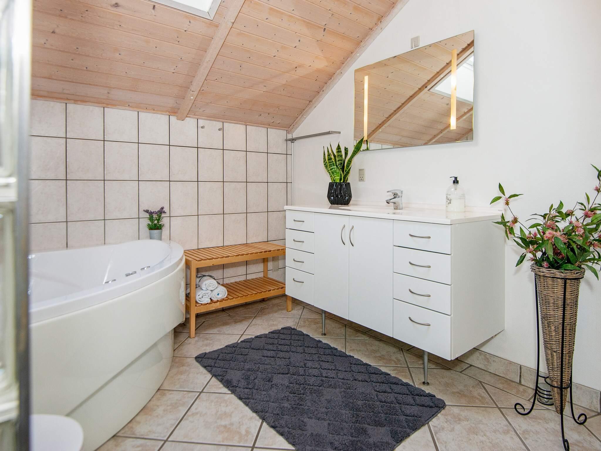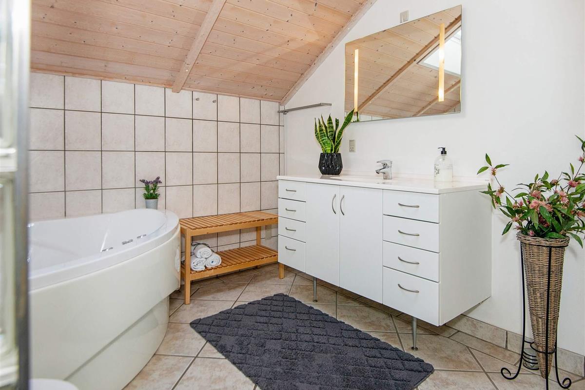 Gut instand gehaltenes Ferienhaus mit Whirlpool für zwei Personen in einem der beiden Bäder. Liegt in landschaftlich reizvoller Umgebung, in einem Ferienhausgebiet bei Nørhede.