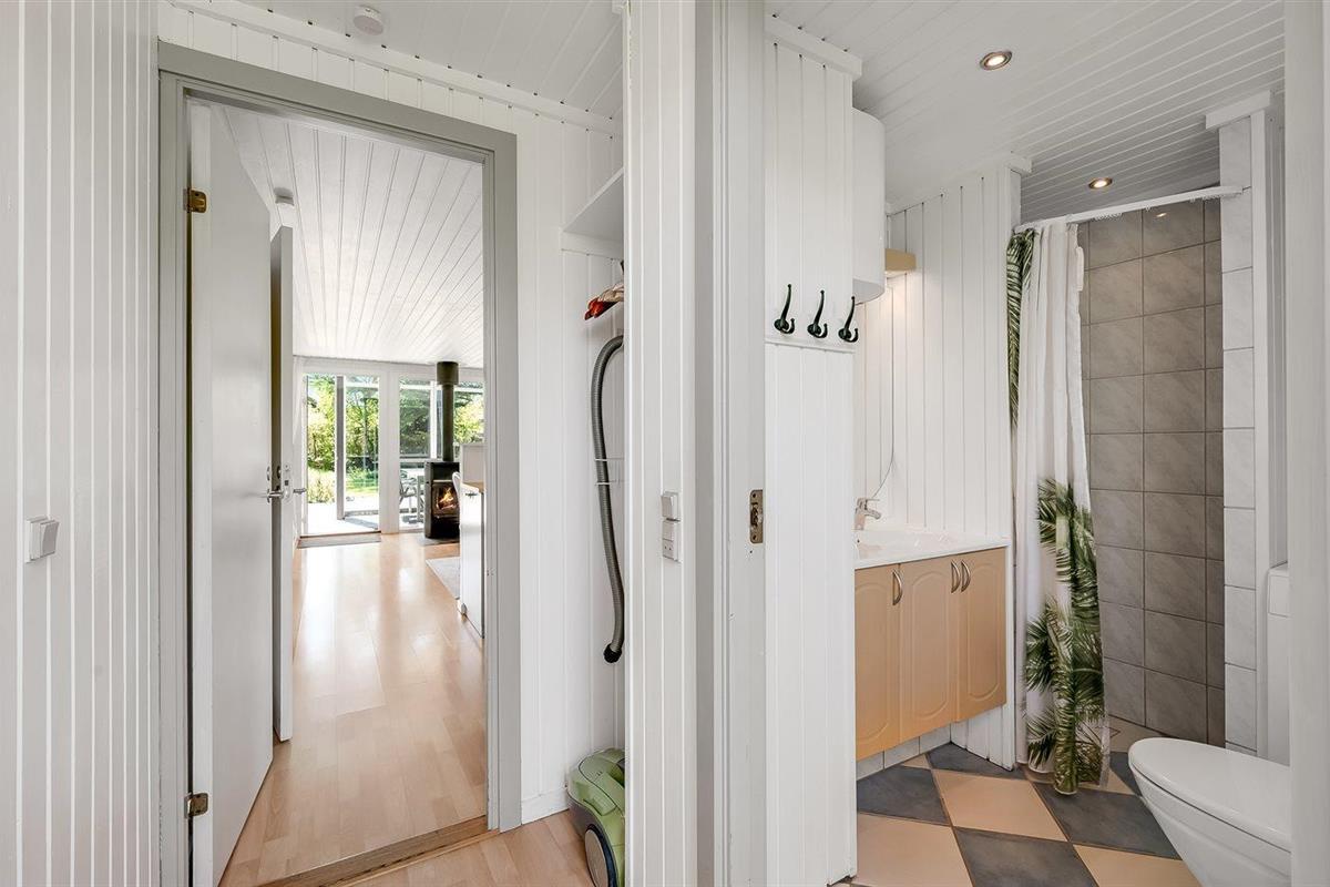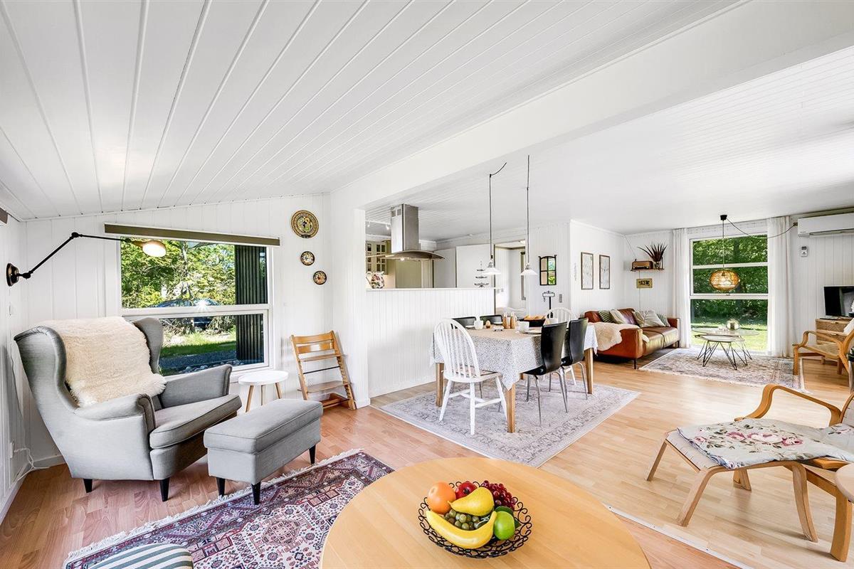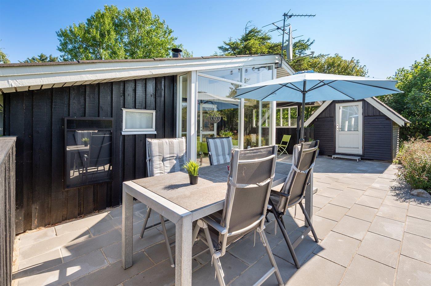 De vakantiewoning is gelegen op een 910 m² groot natuural grond. Afstand tot de zee 5000 m. Afstand tot de fjord 200 m. Dichtstbijzijnde winkel 2000 m. Bij de vakantiewoning hoort 26 m² terras. Daarnaast is er een 16 m² groot overdekt terras. Gereedschapsruimte. Schommel. Zandbak. Parkeerplaats bij het huis.