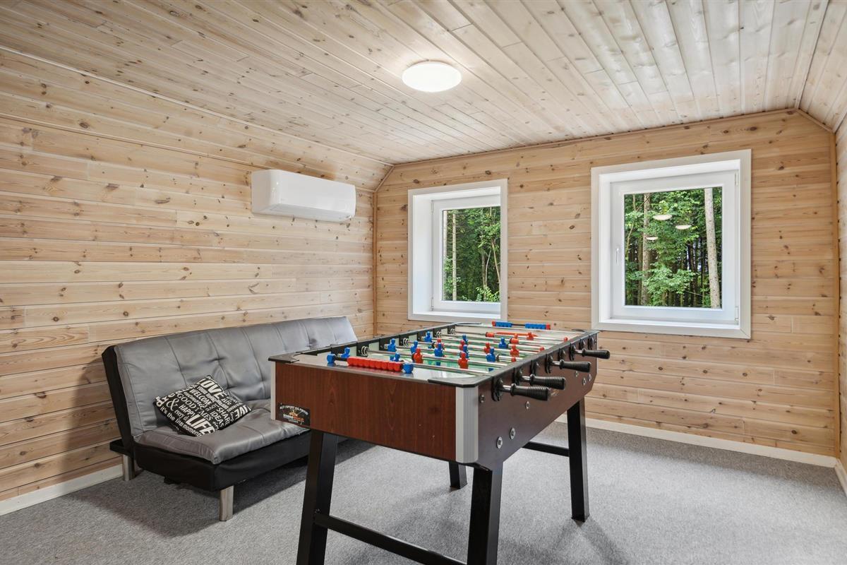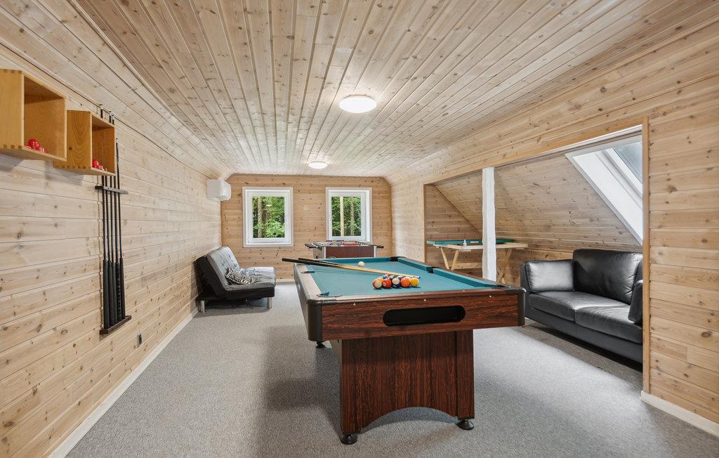 Het vakantiehuis heeft een houtkachel die wordt verwarmd met houtpellets en zo bijdraagt ??aan lagere stookkosten. In de speelkamer heb je een pooltafel, airhockey en tafelvoetbal. Het huis heeft ook een afgesloten, gedeeltelijk overdekte binnenplaats met tafeltennis en andere spelletjes.