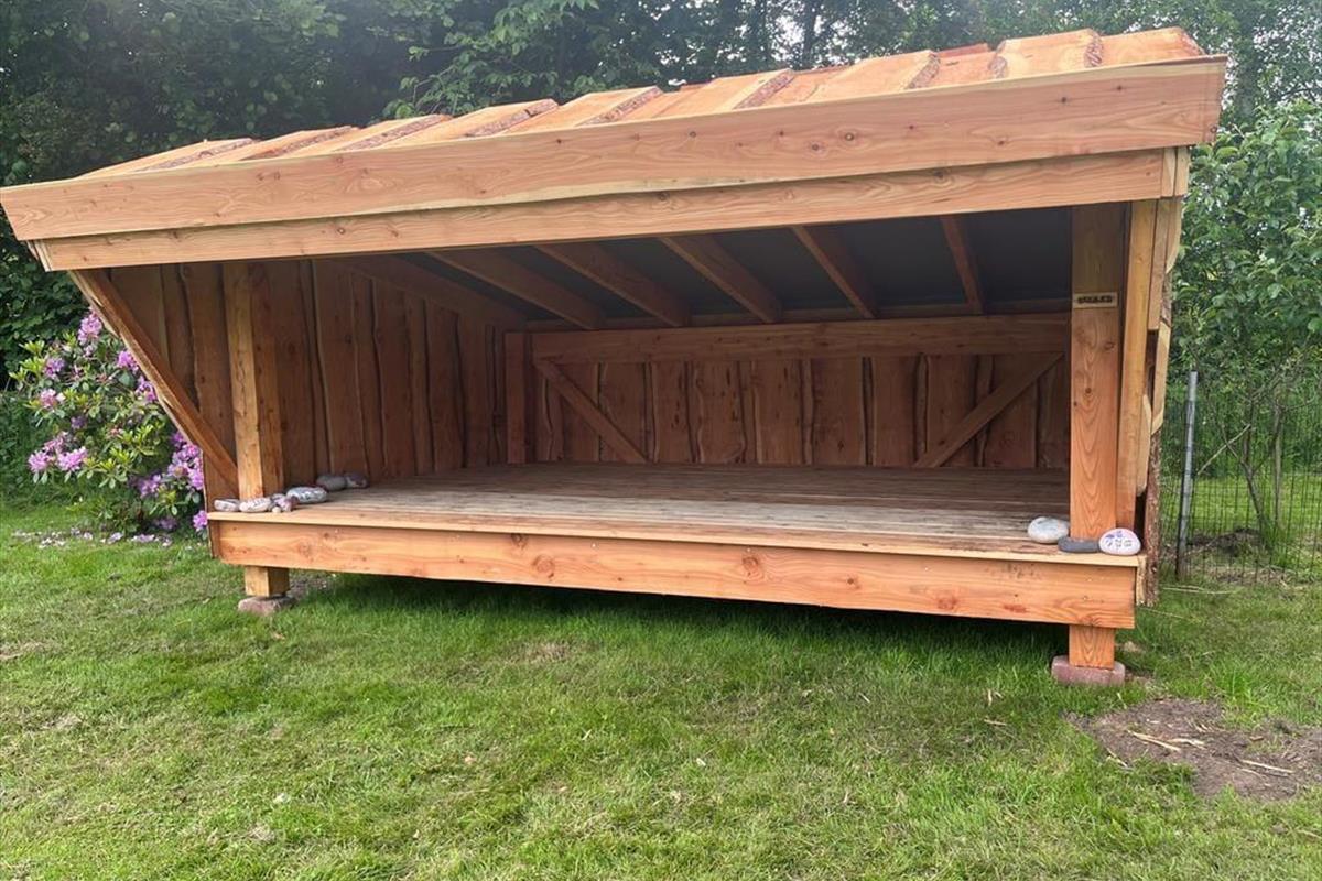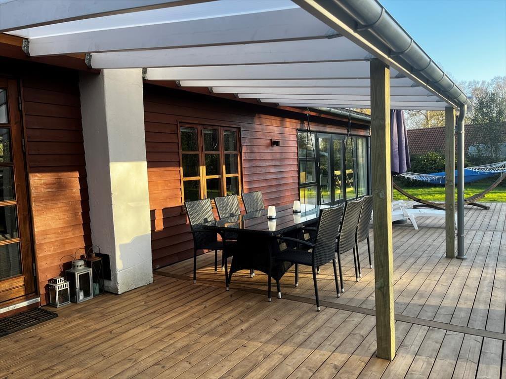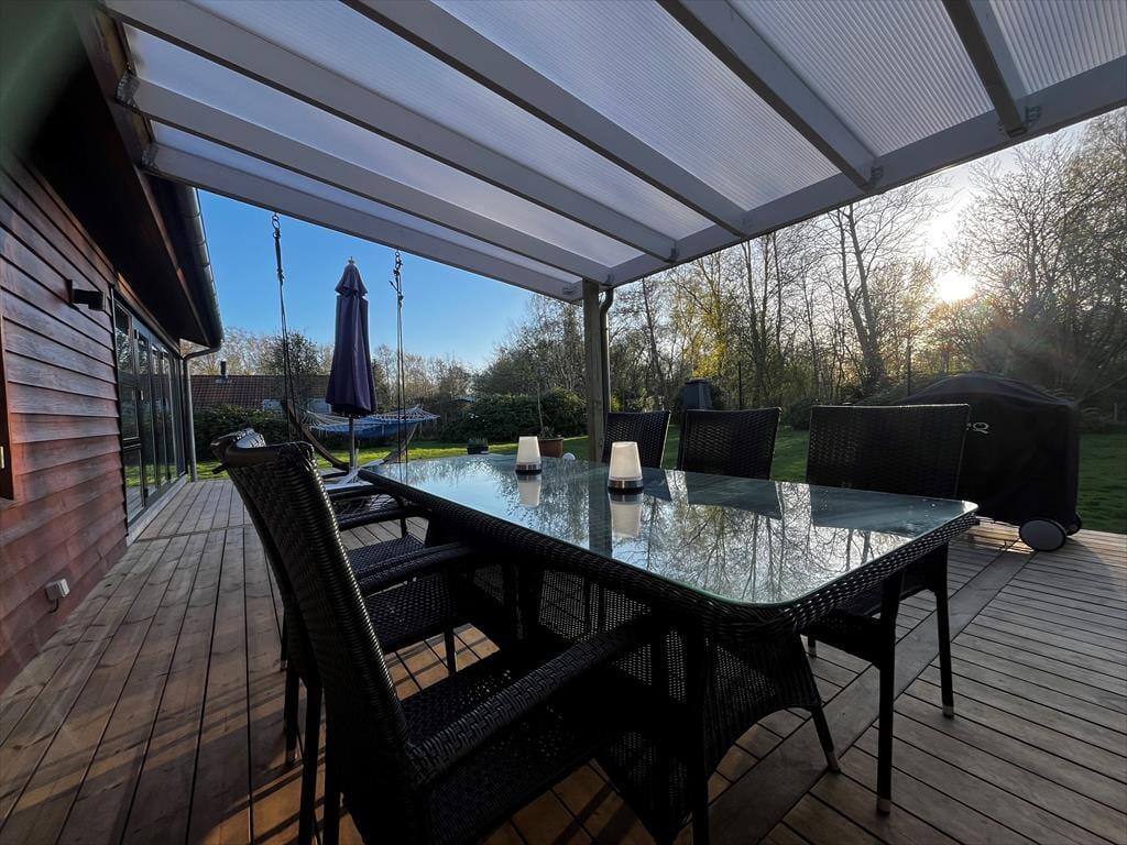 Auf der großen Terrasse genießt du die Wahl zwischen angenehm kühlen Schattenplätzen unter der Überdachung und den wärmenden Sonnenstrahlen auf dem offenen Terrassenbereich. Liegestühle und eine Hängematte versprechen maximale Entspannung und Erholung. Deine Kinder werden den gesamten Tag hindurch vergnügt in der Sandkiste buddeln, schaukeln oder auf dem Rasen Fußball und andere unterhaltsame Gartenspiele spielen.