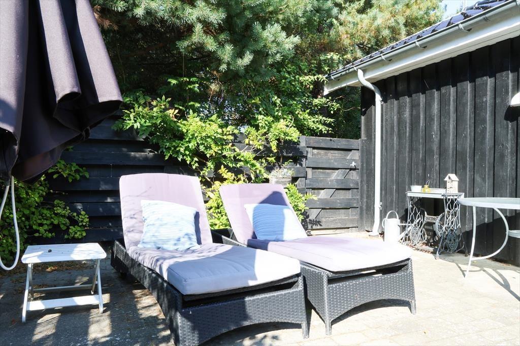Das Ferienhaus liegt auf einem wunderschönen Naturgrundstück am Ende einer ruhigen Sackgasse. Es ist umgeben von herrlichen Bäumen, die das Gefühl vermitteln, mitten in der Natur Urlaub zu machen. Die großzügigen Terrassen bieten Sonne von morgens bis abends. Genieße deinen Morgenkaffee begleitet vom Vogelgezwitscher auf der kleinen Ostterrasse. Sonnenbaden kannst du auf den Liegestühlen der Süd- und Westterrasse und die Abende lassen sich bei einem gemütlichen Grillabend am Gartentisch wunderbar ausklingen.