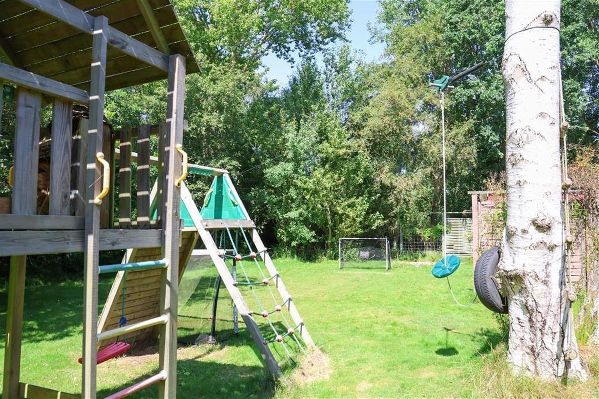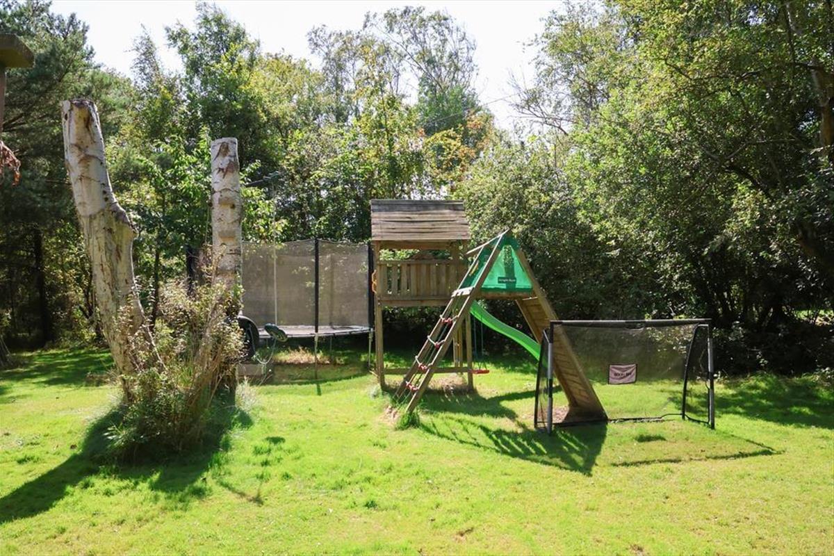 Das Badezimmer beinhaltet eine Dusche und ein WC. Im Nebengebäude stehen zwei zusätzliche Schlafplätze bereit. Im beschaulichen Garten erfreuen sich Ihre Kinder an einer Schaukel, einem Trampolin, einer Schwebebahn und einem Fußballtor. Zu den schönen Terrassenarealen zählen ein überdachter Bereich gen Südwesten und eine nach Westen gerichtete offene Terrasse. Sie werden auf dem Grundstück daher stets ein passendes Plätzchen mit Sonne, Schatten oder Windschutz finden.