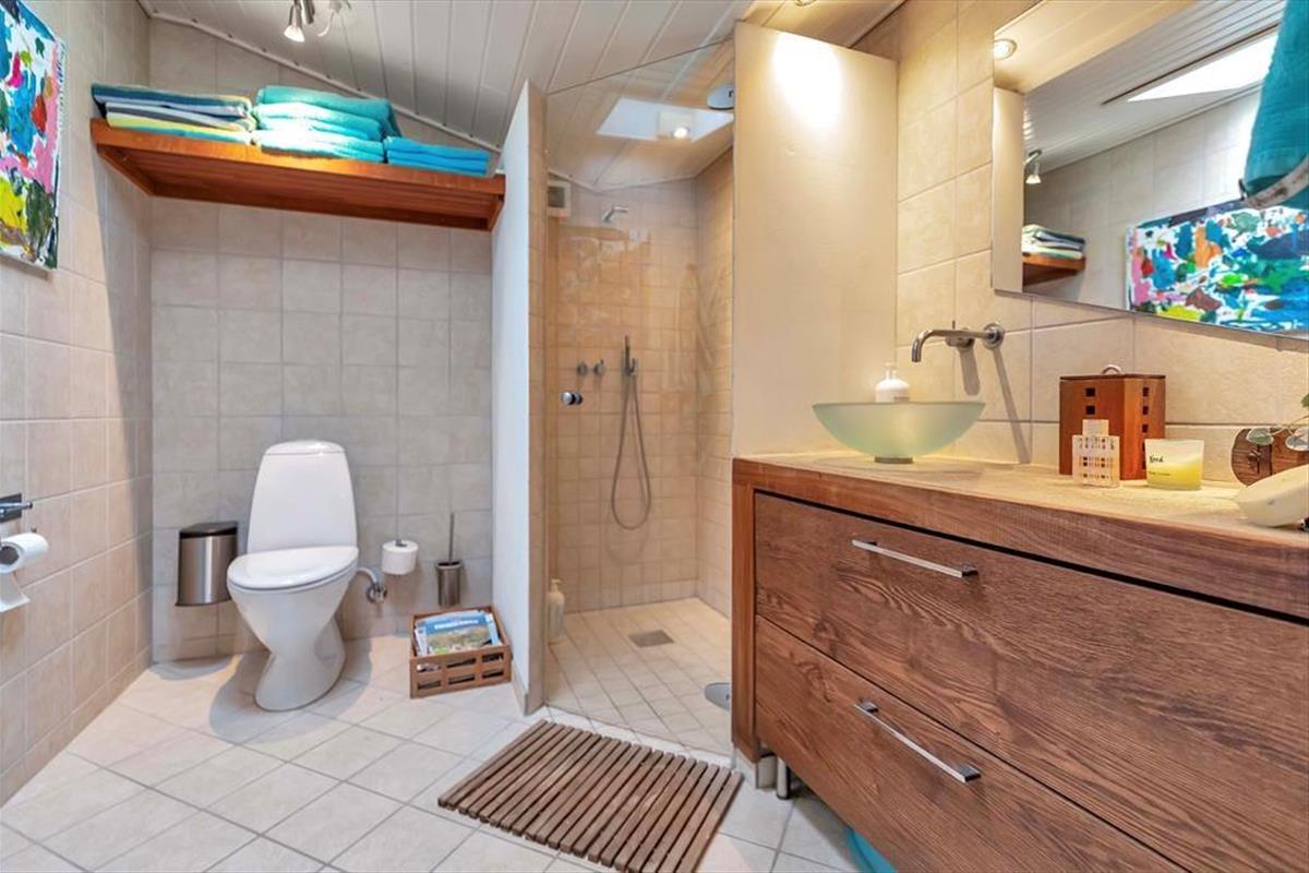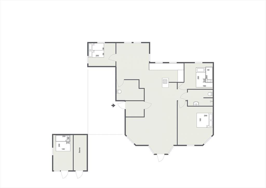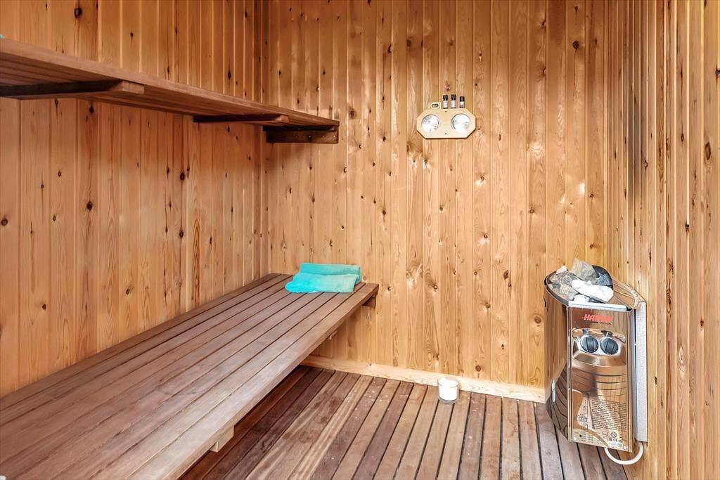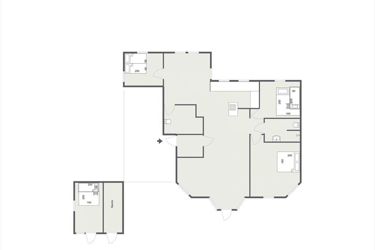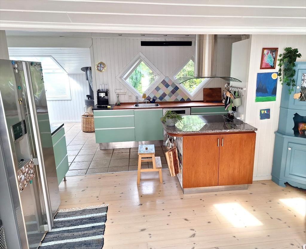 Das Herzstück des Ferienhauses ist das große Wohnzimmer mit großem TV-Paket und schnellem Internet, das mit der offenen Küche verbunden ist. In der Küche ist genug Platz, damit ihr euch bei der Zubereitung eines guten Mittagessens gegenseitig helfen könnt, und hier könnt ihr unter anderem auch frische Eiswürfel für Drinks aus dem amerikanischen Kühlschrank holen. Es besteht die Möglichkeit, sich an den Esstisch zu setzen und sich zu unterhalten oder ein gemütliches Brettspiel zu spielen. Es gibt ein schönes Badezimmer mit Dusche und eine Gästetoilette. Im angrenzenden Nebengebäude gibt es neben einem schönen Schlafzimmer auch eine schöne Sauna, die ihr kostenlos nutzen könnt.