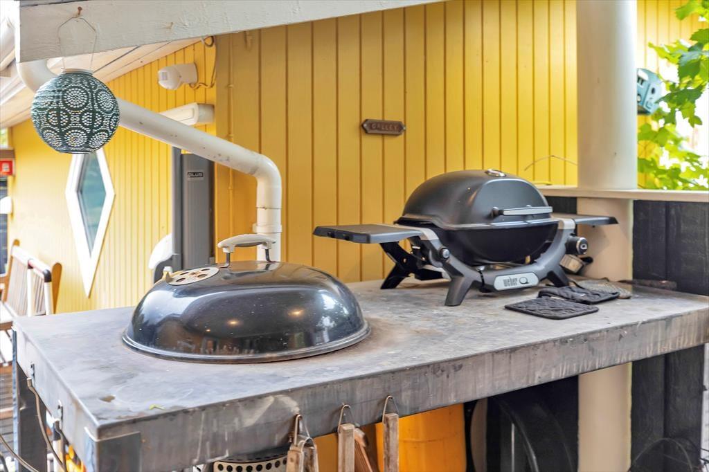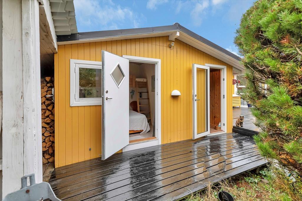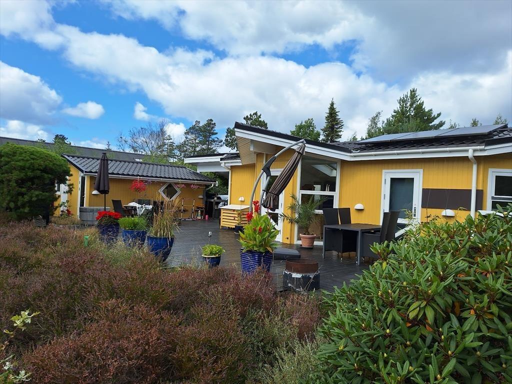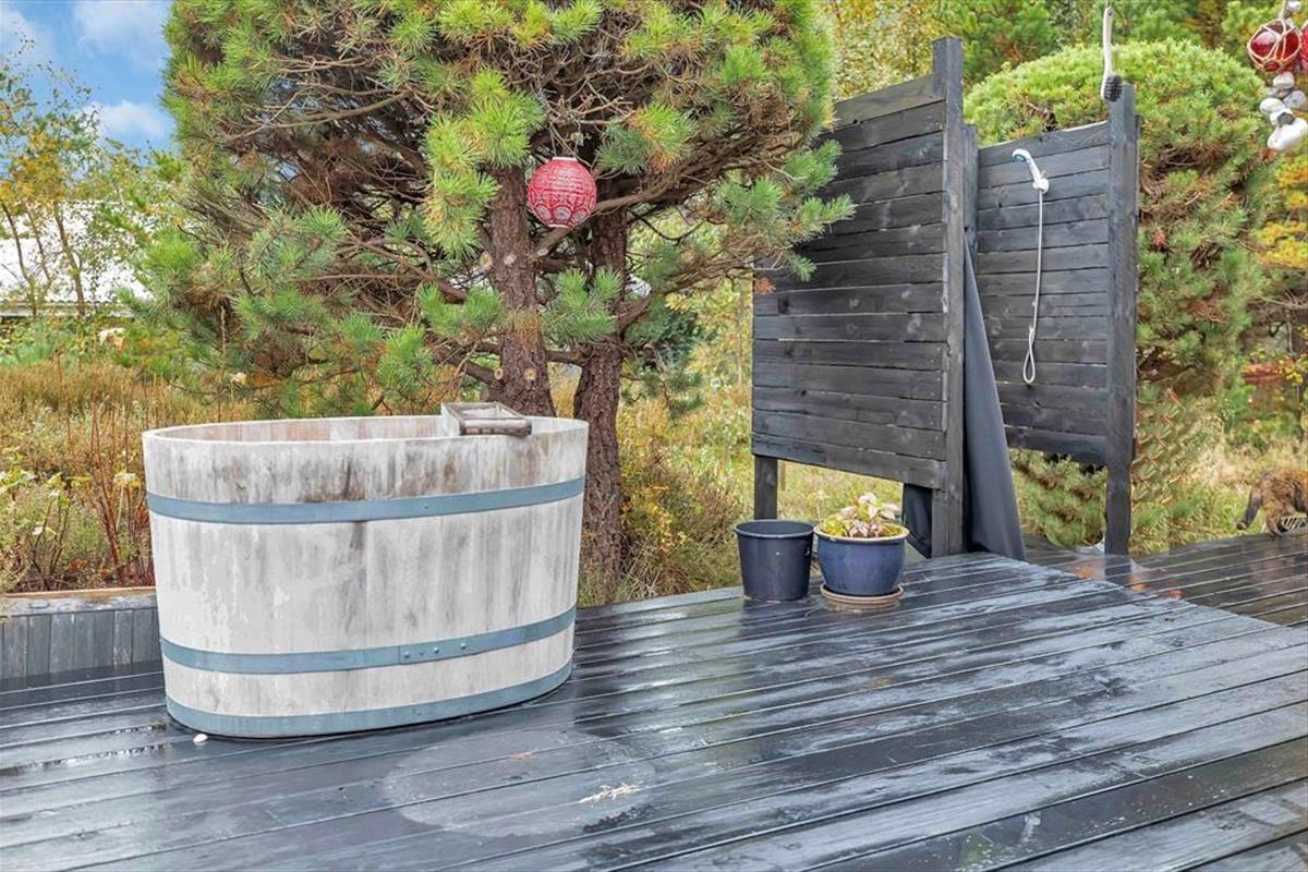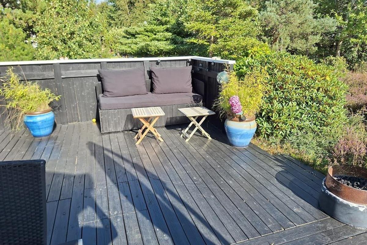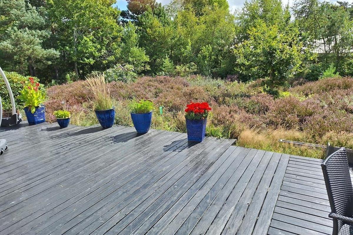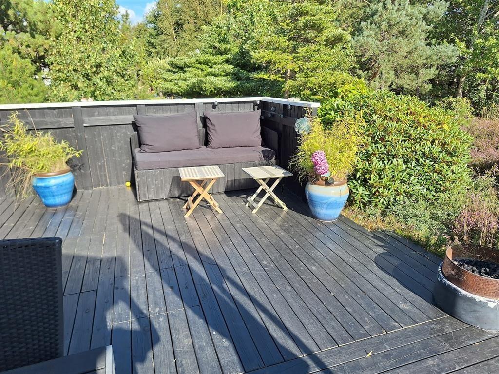 Nach einem schönen Tag am Strand könnt ihr euch entweder auf der Terrasse entspannen und einfach die Sonne genießen, während ihr euch in ein gutes Buch vertieft. Denkt auch daran, die Außendusche des Hauses zu nutzen, wo ihr euch unter freiem Himmel abkühlen könnt. Die Naturlandschaft lässt sich nicht beschreiben, man muss sie erleben. Die schöne Heide und die gemütliche Bepflanzung werdet ihr sicherlich zu schätzen wissen. Wenn es Zeit für das Abendessen ist, könnt ihr euch an den Tisch unter dem gemütlichen überdachten Teil der Terrasse setzen, wo ihr auch den Grill im Außenküchenbereich nutzen könnt.