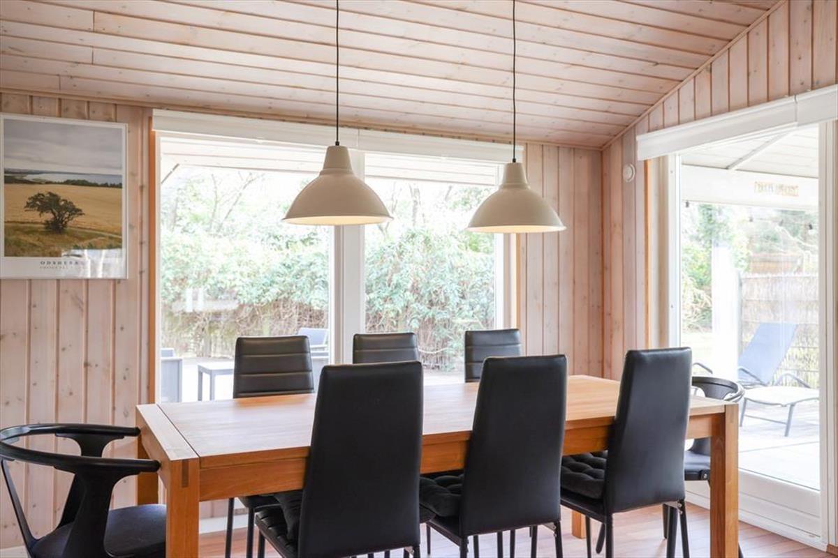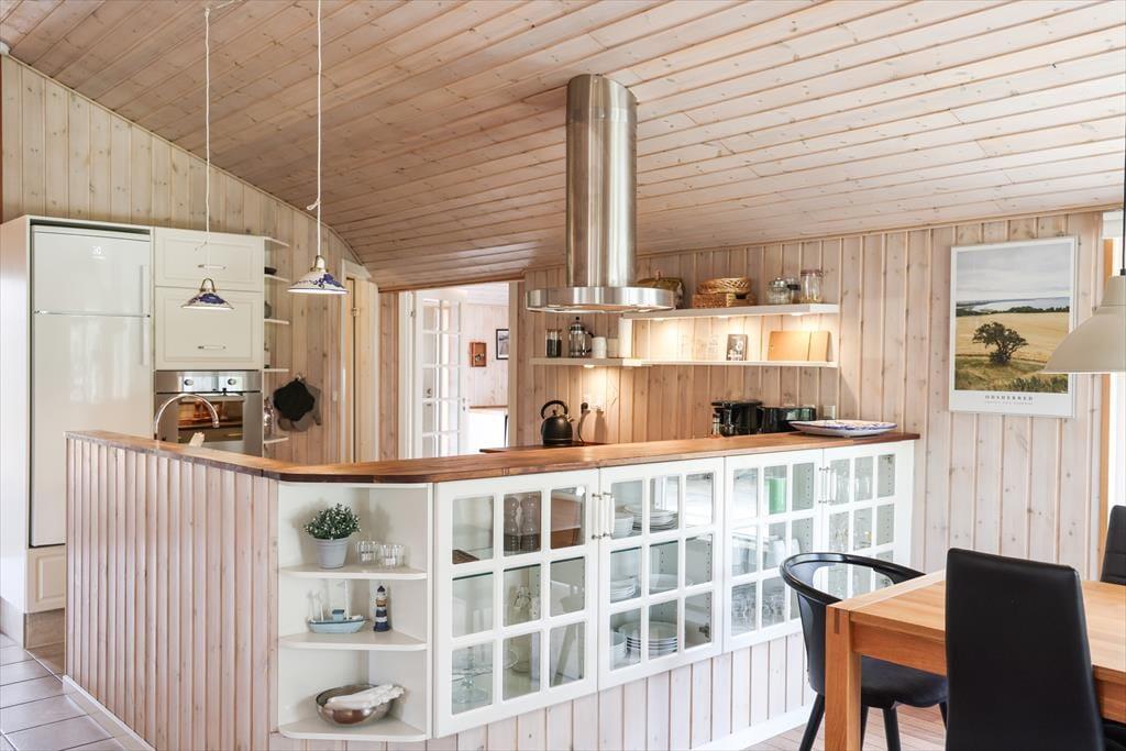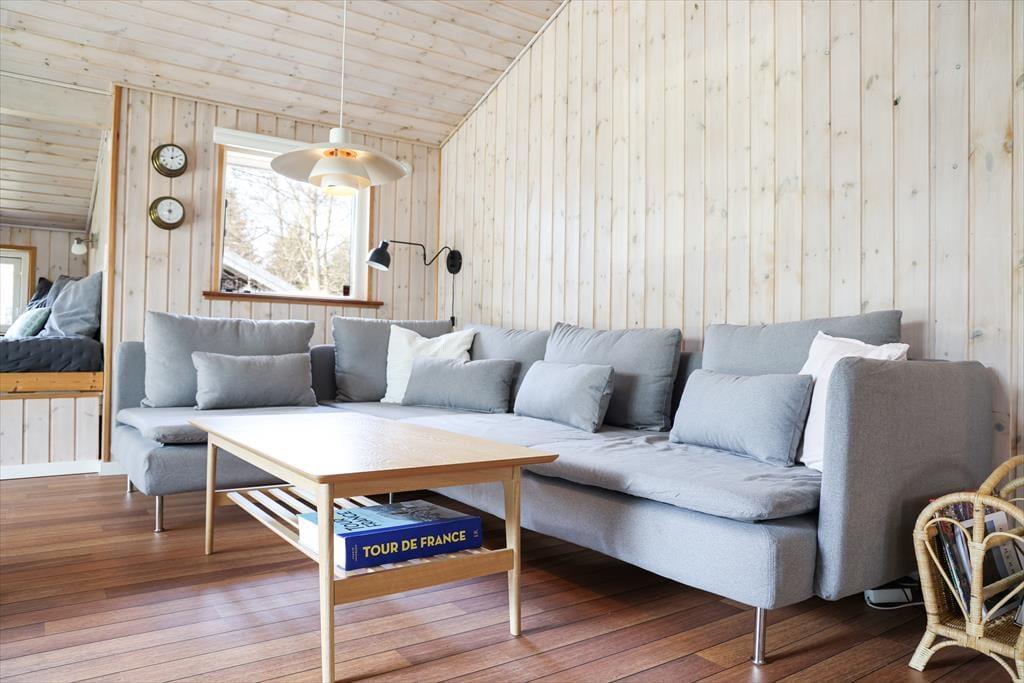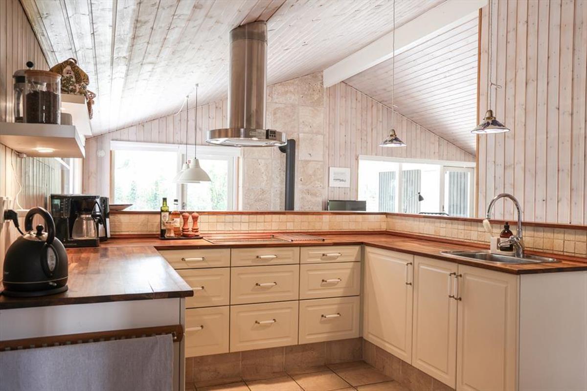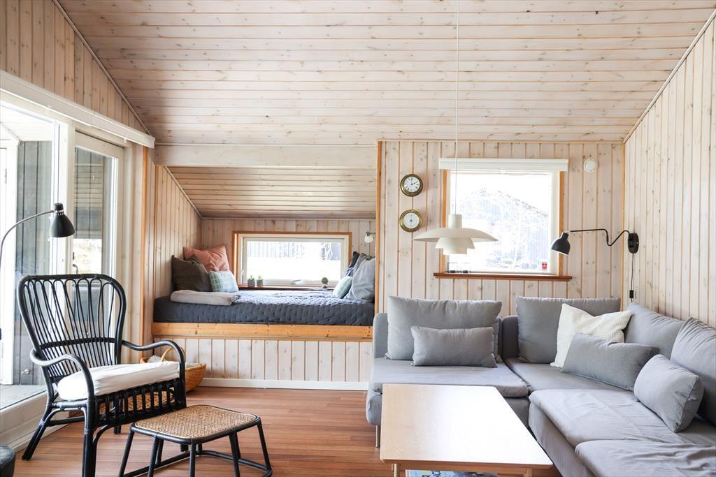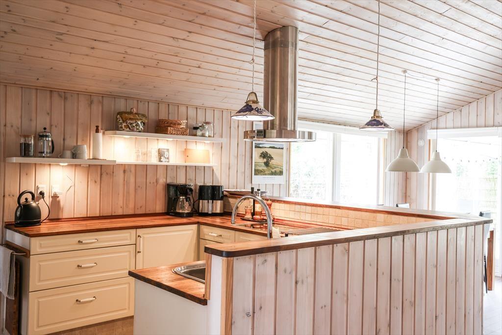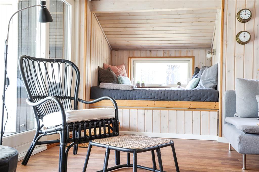 Dieses fantastische Ferienhaus besticht mit hellen, einladenden Räumlichkeiten, die durch hohe Decken geprägt werden. Herzstück deines Urlaubsdomizils ist der mittig im Haus platzierte Küchen- und Essbereich, der zu vielen geselligen Stunden beim Kochen und bei den anschließenden Mahlzeiten am Esstisch einlädt. Im Wohnraum kannst du es dir an kühlen Abenden mit einem guten Buch vor dem behaglich knisternden, angenehm wärmenden Kaminofenfeuer gemütlich machen. Alternativ lädt die gemütliche Schlafnische zum Kuscheln und Entspannen ein. Vergnügt geht es während unterhaltsamer Spielrunden am Couchtisch zu. Eine Auswahl an Gesellschaftsspielen steht im Ferienhaus bereit. Dein Ferienhaus überzeugt mit einer guten Raumaufteilung und viel Platz. Dadurch kannst du hier mit guten Freunden und deiner Familie gemütliche Urlaubstage und stimmungsvolle Urlaubsabende verleben, ohne die bereits schlafenden Kinder zu stören.