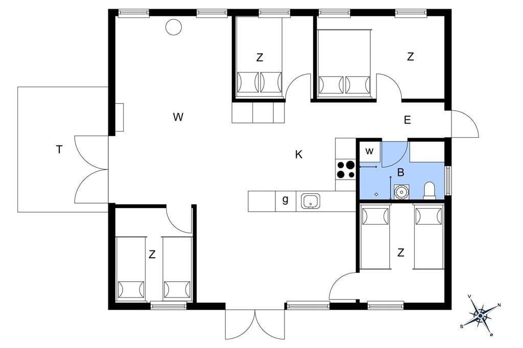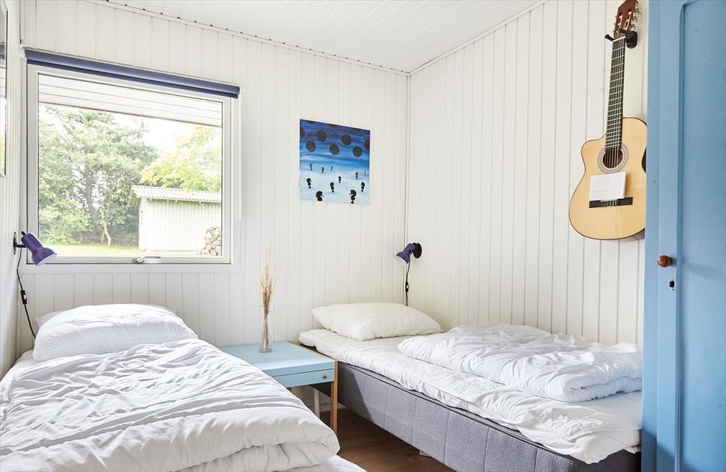 Das Ferienhaus ist mit einem schönen Wohnzimmer ausgestattet, hier haben Sie alle Möglichkeiten zur Entspannung und Gemütlichkeit. Tolle offene Küche wo Sie sich alle damit helfen können, das Mittagsessen zu vorbereiten. Badezimmer mit Dusche. Es gibt 4 gute Schlafzimmer, davon 2 mit Doppelbetten und 2 mit Einzelbetten. Alles im Haus erscheint hell und tadellos. Auf der Terrasse können Sie die Sonne genießen und ein Paar guten Steaks auf den Grill hinlegen, während die Kinder im Garten spielen.