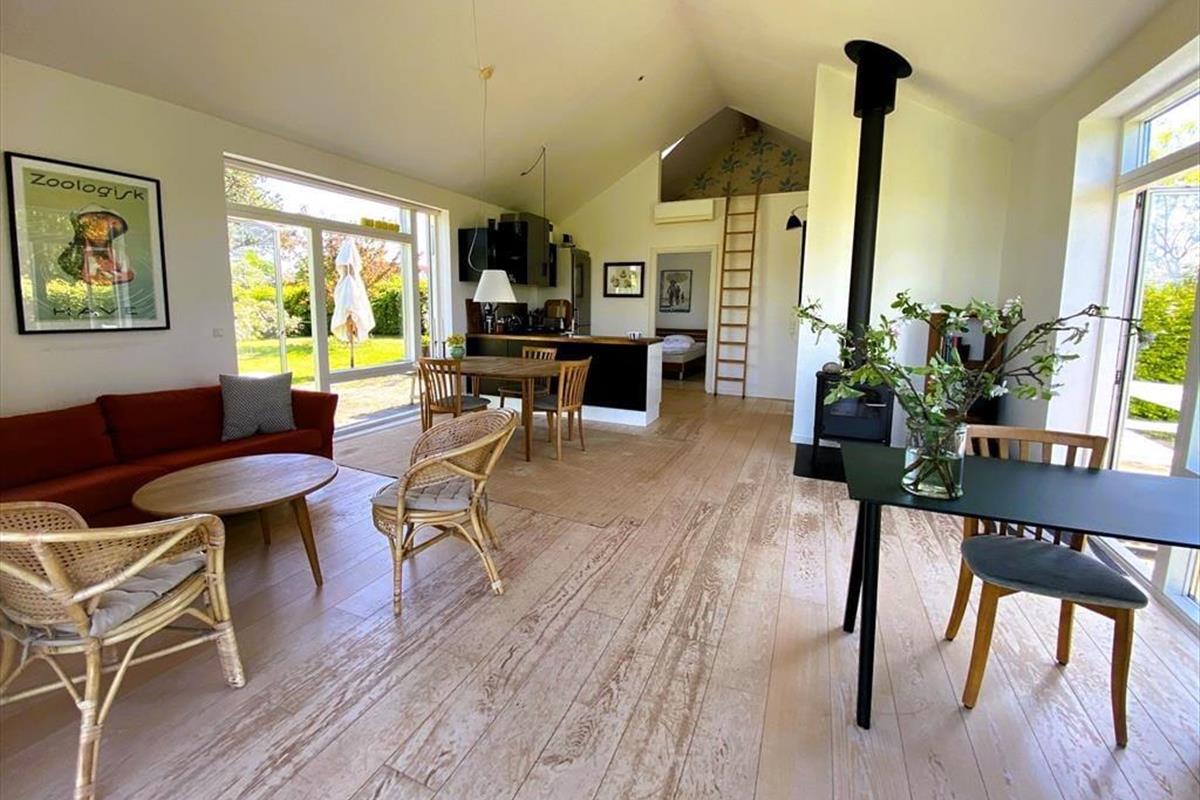 Morgens wirst du vom Vogelgezwitscher geweckt und in der Dämmerung beobachtest du häufig Rehe und Hasen. Der Wohnraum beeindruckt mit einer herrlichen Aussicht über das 5.000 m² große Naturgrundstück und weiter über die offene Landschaft. Du genießt deinen Urlaub in ungestörter Umgebung, entspannst dich mitten in der Natur, genießt zahllose Abkühlungen am nahegelegenen Strand und erkundest die reizenden umliegenden Fischerorte und Häfen.