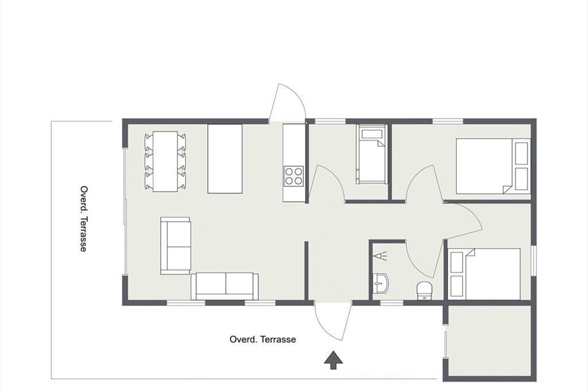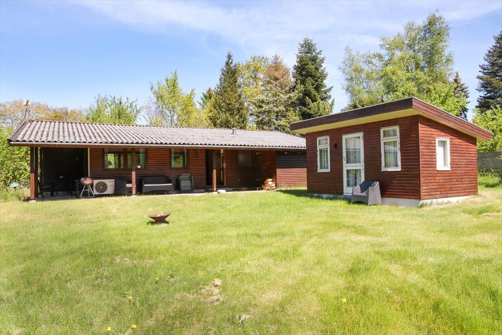 Das nach Süden ausgerichtete Grundstück bietet einen schönen Rahmen für verschiedenste Aktivitäten an der frischen Luft. Ihr könnt allabendlich an der gemütlichen Lagerfeuerstelle beisammensitzen oder auf der Grasfläche mitgebrachte Outdoor-Spiele spielen. Das Grundstück ist offen und die Bäume nicht allzu groß. Dadurch bieten sich reiche Möglichkeiten für ausgedehnte Sonnenbäder. Falls es dir in der Sonne zu warm werden sollte, kannst du dich wunderbar auf die überdachte Terrasse zurückziehen, die unter anderem vom Wohnraum aus zugänglich ist. Die Terrasse erweist sich auch abends, wenn die Sonne längst untergegangen ist, als schöner Aufenthaltsplatz. Zu Fuß erreicht ihr binnen kurzer Zeit Lyngens Café & Minigolf, wo ihr nach einer vergnügten Runde Minigolf mit der gesamten Familie Eis essen oder euch mit einem Mittagessen verwöhnen lassen könnt. Bevor ihr den Rückweg zum Ferienhaus antretet, erledigt ihr am besten gleich eure täglichen Einkäufe im direkt gegenüberliegenden Brugsen-Markt.