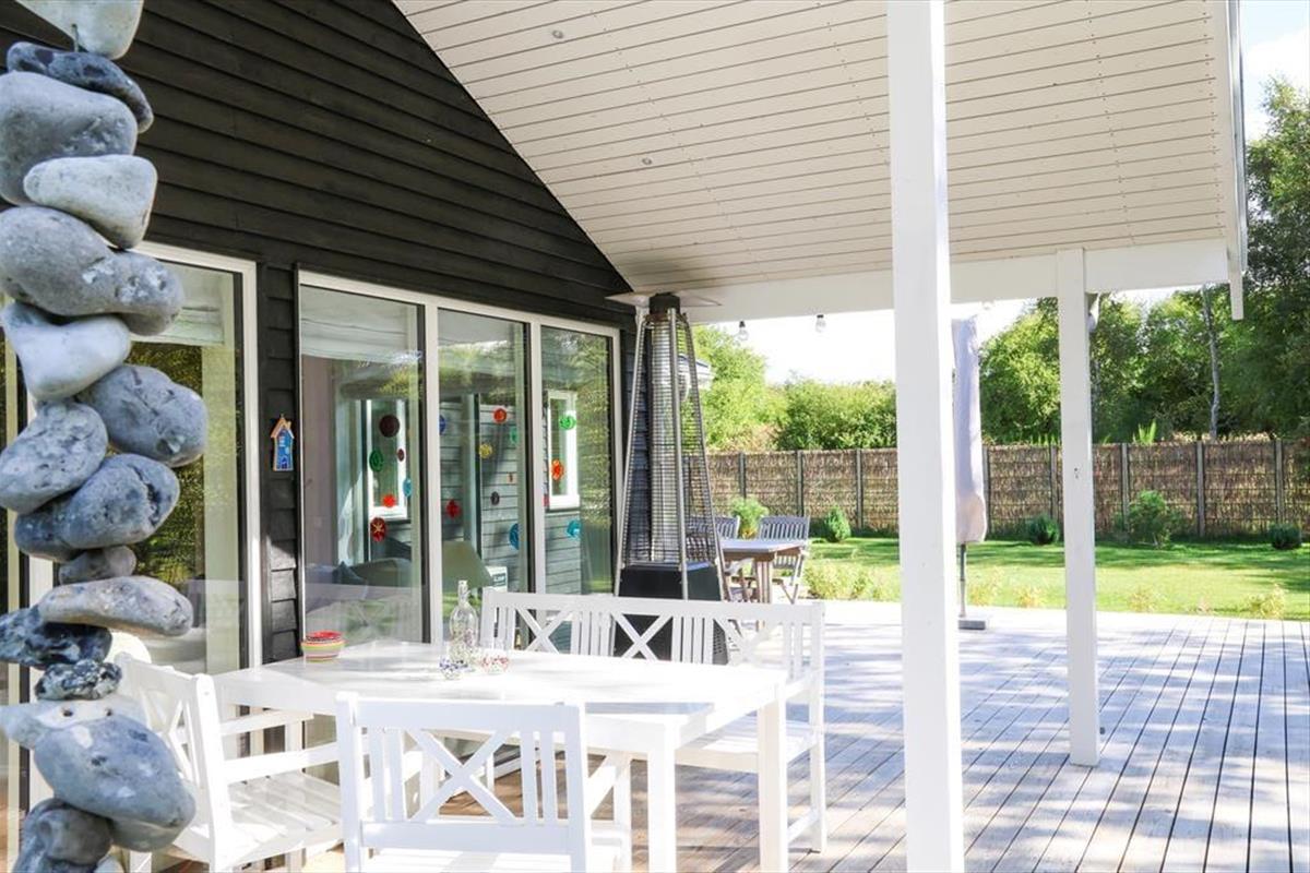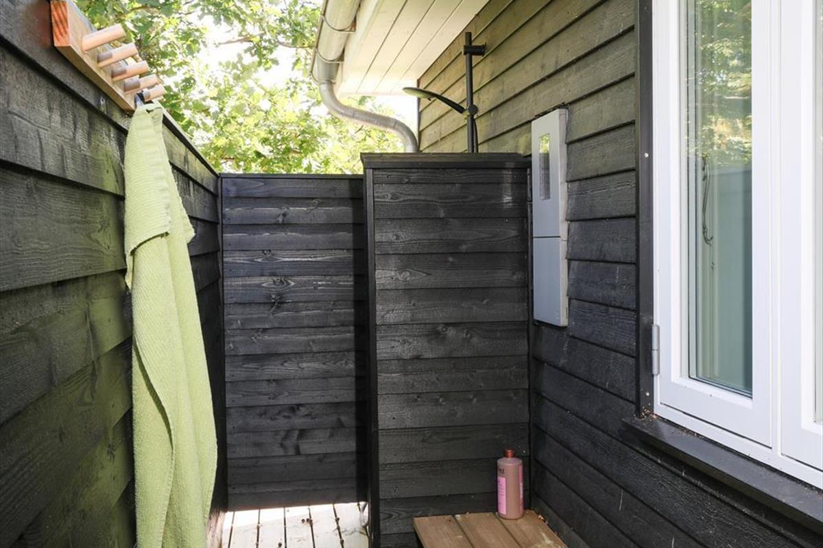 Nach einem entspannten Tag am schönen Sandstrand, spült dir die Außendusche deines Ferienhauses den Sand und das Salz des Meeres von der Haut. Sie verfügt über fließend warmes und kaltes Wasser und sorgt somit an warmen Sommertagen und nach schweißtreibenden Gartenspielen für willkommene Erfrischungen. Auf den großen Terrassenarealen deines Ferienhauses genießt du das Leben im Freien von morgens bis abends. Sie sind angenehm weitläufig und bieten viel Platz für gemeinsame Essen und für ausgedehnte Sonnenbäder. Bei Einbruch der Dunkelheit kannst du dich mit deinen Lieben wunderbar unter die große Terrassenüberdachung zurückziehen und hier den Abend in aller Gemütlichkeit bei angeregten Gesprächen und eurem Lieblingsgetränk ausklingen lassen.