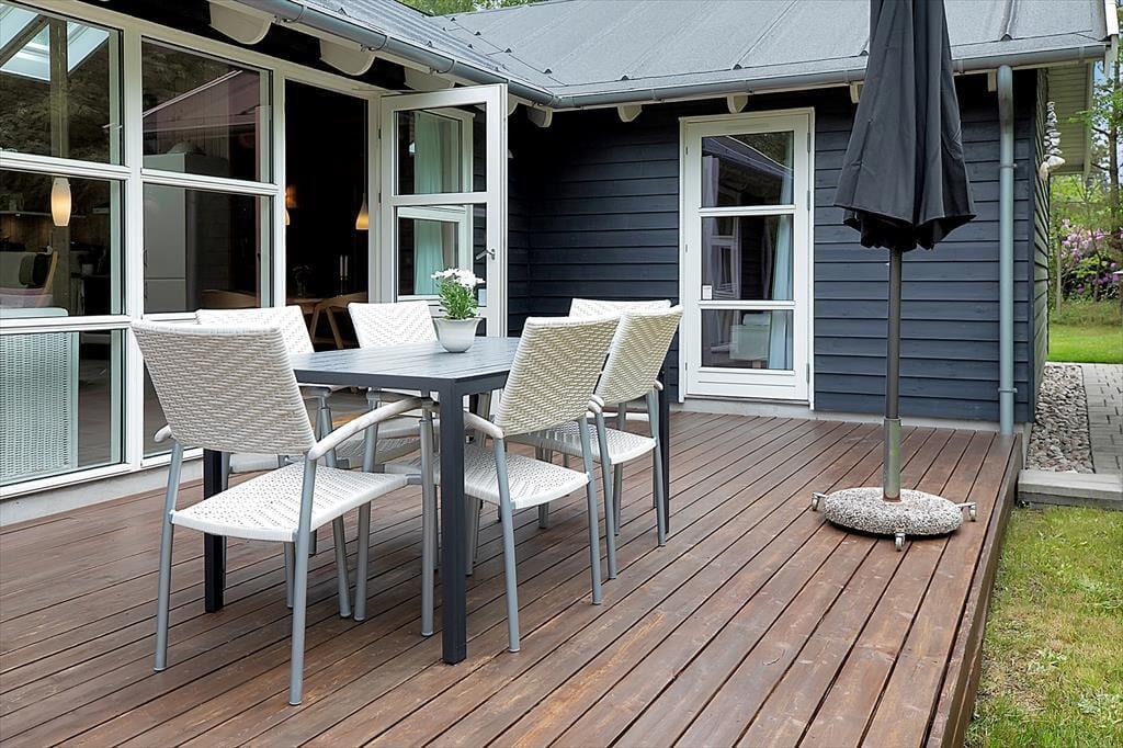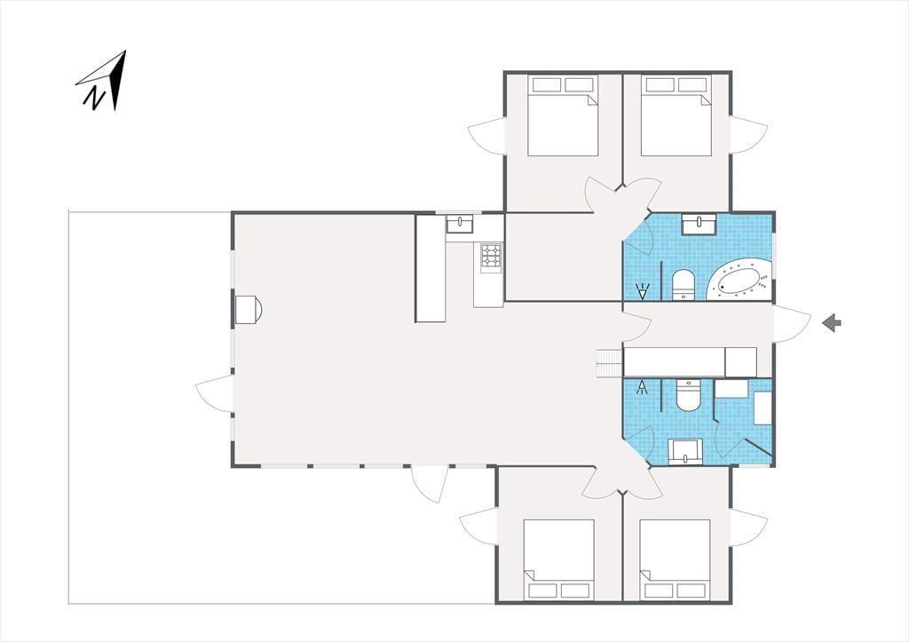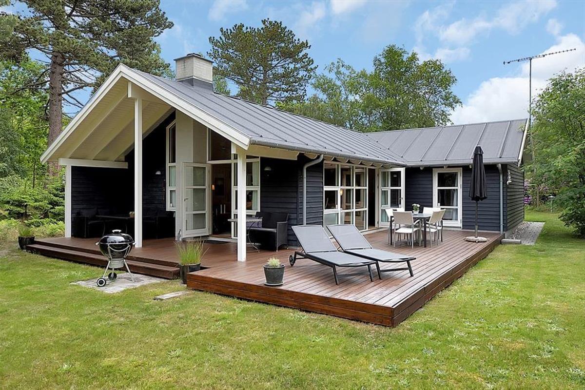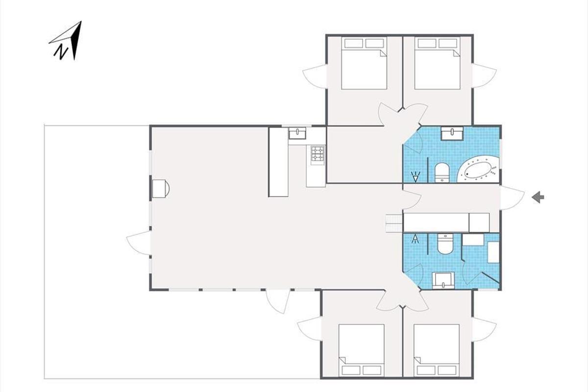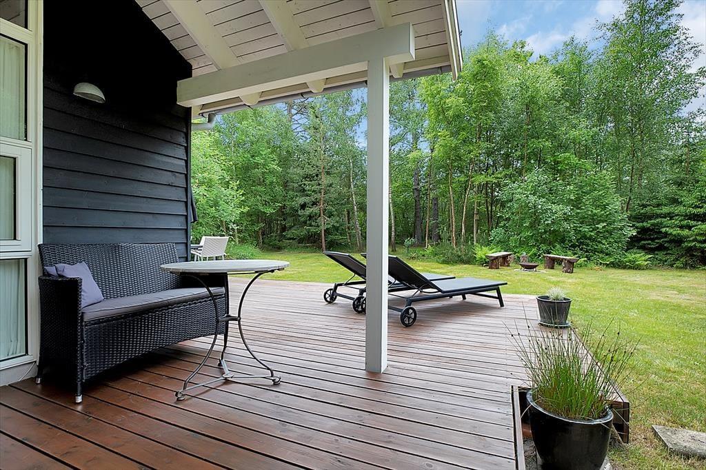Das Urlaubsdomizil begrüßt Sie mit einem schönen Wohnraum, der zu gemütlichen Stunden einlädt. In der offen an den Wohnraum grenzenden Küche können Sie gemeinsam köstliche Urlaubsmahlzeiten kreieren. Ihnen stehen zwei ansprechende Badezimmer mit Wellnessflair zur Verfügung - eines mit einer Sauna, das andere mit einem Whirlpool. Alle vier vorhandenen Schlafräume überzeugen mit je einem Doppelbett und ausreichend Schrankfläche. In Verbindung mit der Küche gibt es einen offenen Schlafboden, der sich sehr schön für Kinder eignet. Die Terrasse ist in einen überdachten und in einen offenen Bereich unterteilt, sodass nichts gegen gemütliche Grillabende und ausgedehnte Sonnenbäder spricht. Ihre Kinder werden gerne auf dem Grundstück umhertollen und spielen. Das gesamte Haus präsentiert sich hell und richtig einladend.