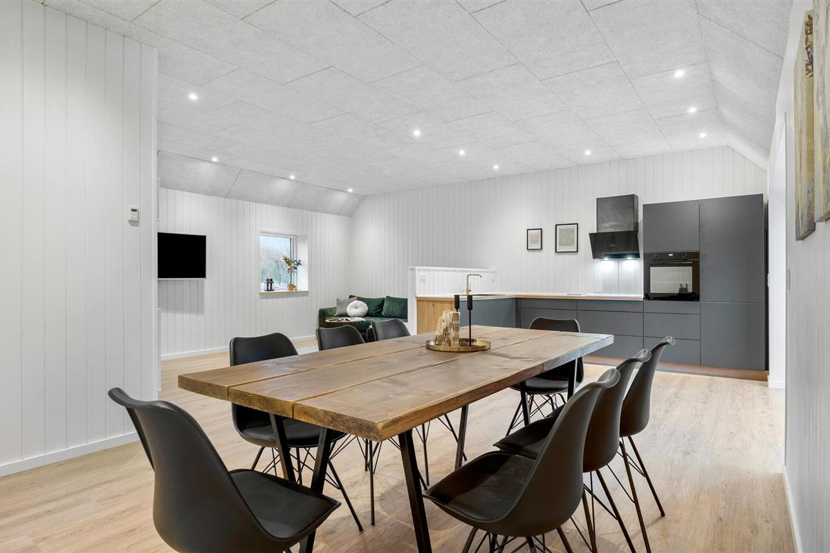 Je vakantiehuis in Ellinge Lyng biedt een uitnodigende sfeer met lichte kamers die worden overspoeld met natuurlijk licht door de grote ramen. Het open woonconcept creëert een zorgeloze en aangename sfeer. Begin je dag in de stijlvolle keuken, die ideaal is uitgerust voor het bereiden van heerlijke maaltijden. Geniet van je ontbijt aan de grote eettafel, die voldoende ruimte biedt voor gezamenlijke maaltijden en ontspannende uurtjes. De tafelvoetbaltafel van het hotel zorgt voor entertainment. Organiseer een leuk toernooi en bepaal de vakantiekampioen tafelvoetbal. Na een dag vol belevenissen kun je ontspannen op de comfortabele banken, een film kijken of gewoon genieten van de rust.