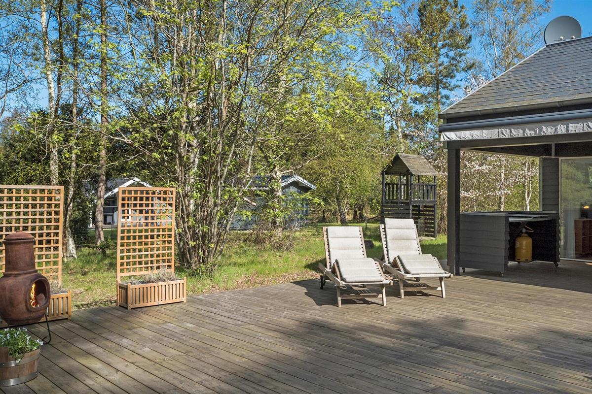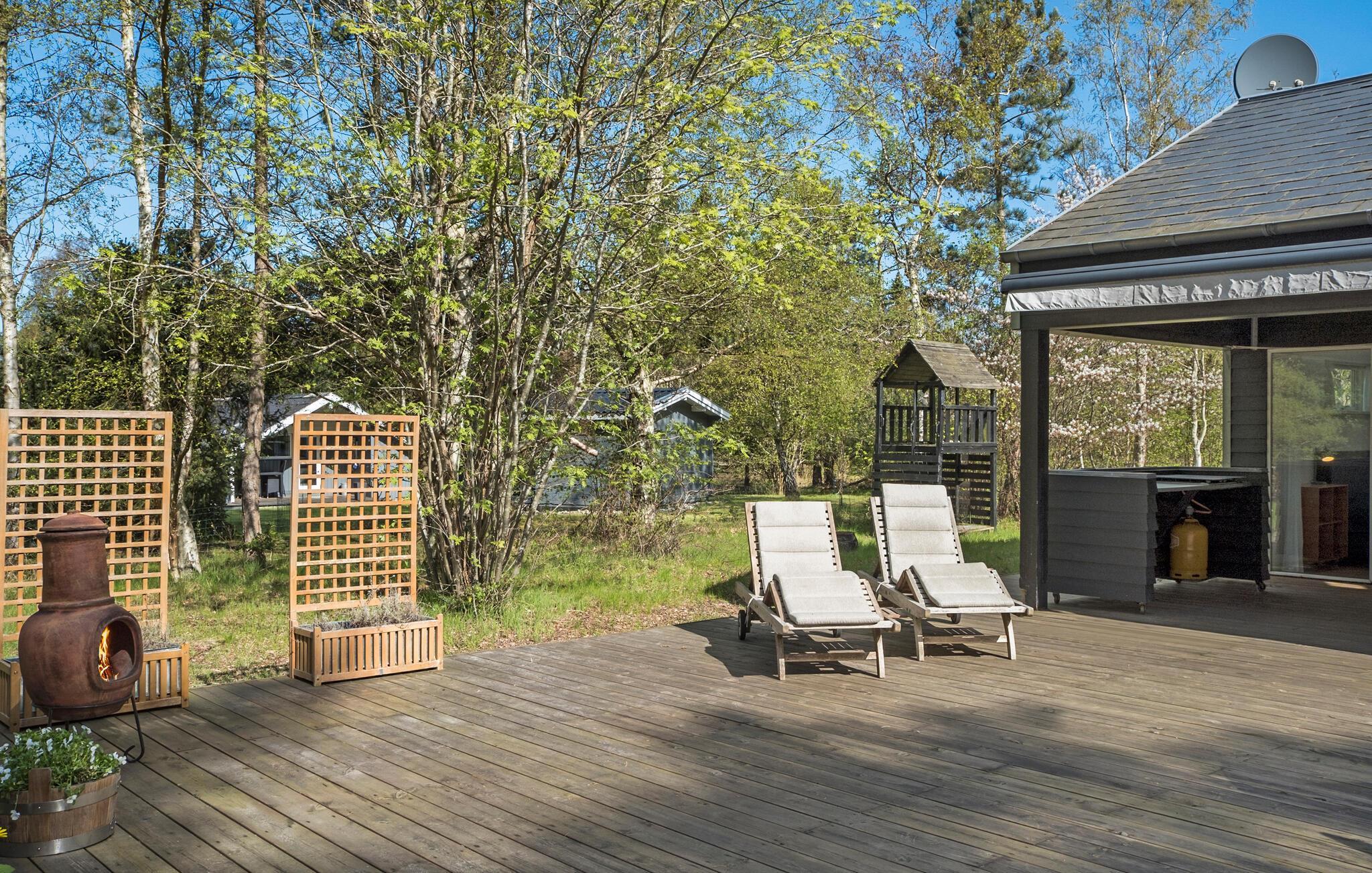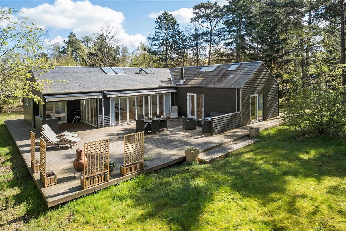 Modern zomerhuis met groot houten terras en prachtige tuin nabij Sejerø Bugten.