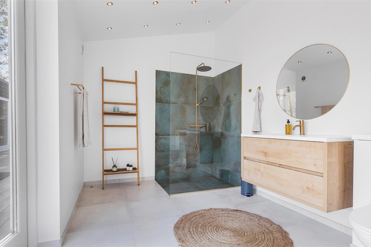 Het huis is omgeven door een prachtig houten terras dat uitkomt op de tuin met veel ruimte. Barbecue bij de buitenkeuken, nip van koele drankjes op je tuinmeubelen en kijk hoe je kinderen in de tuin spelen.