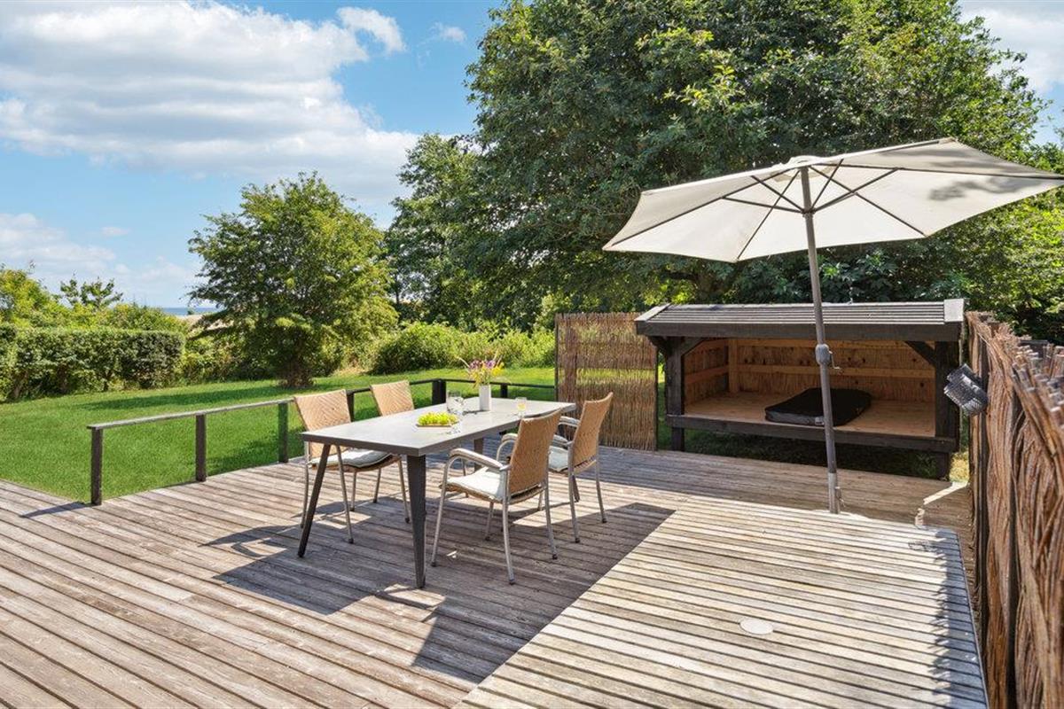Ontdek dit gezellige vakantiehuis op Sejerø met een groot houten terras, nabij zee en natuur, ideaal voor een ontspannen gezinsvakantie.