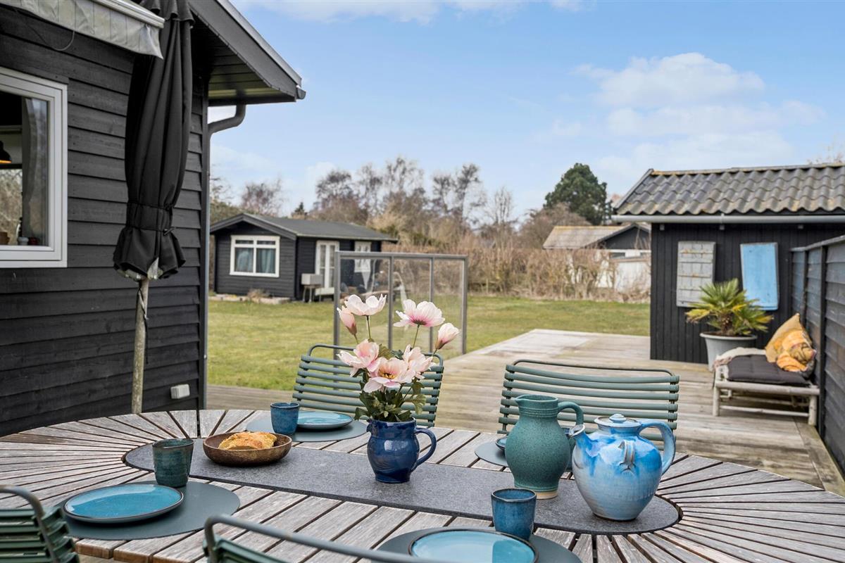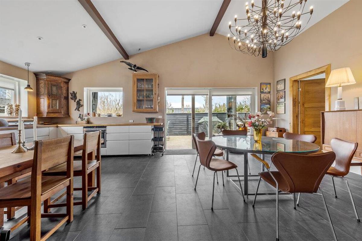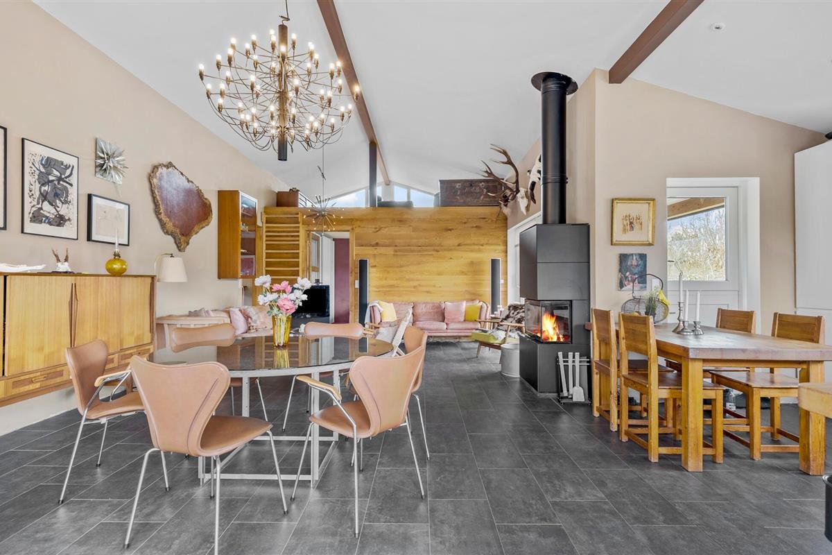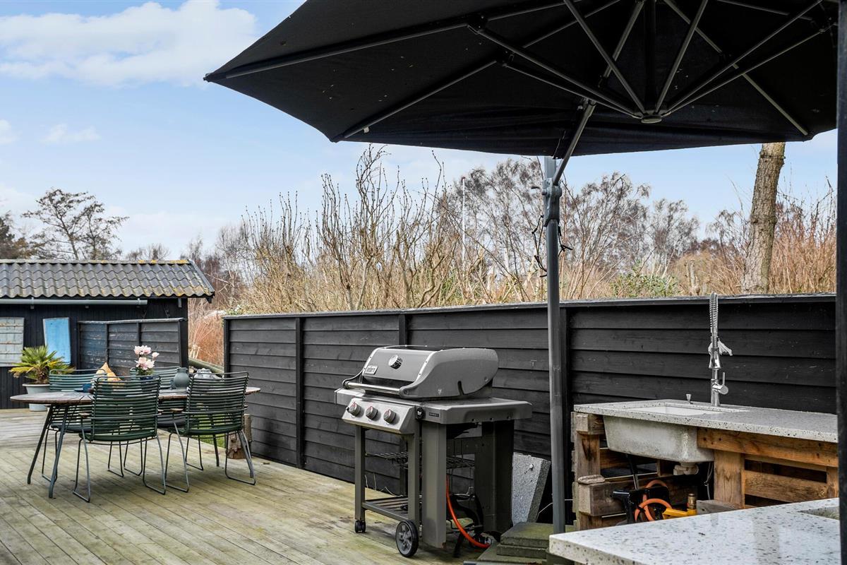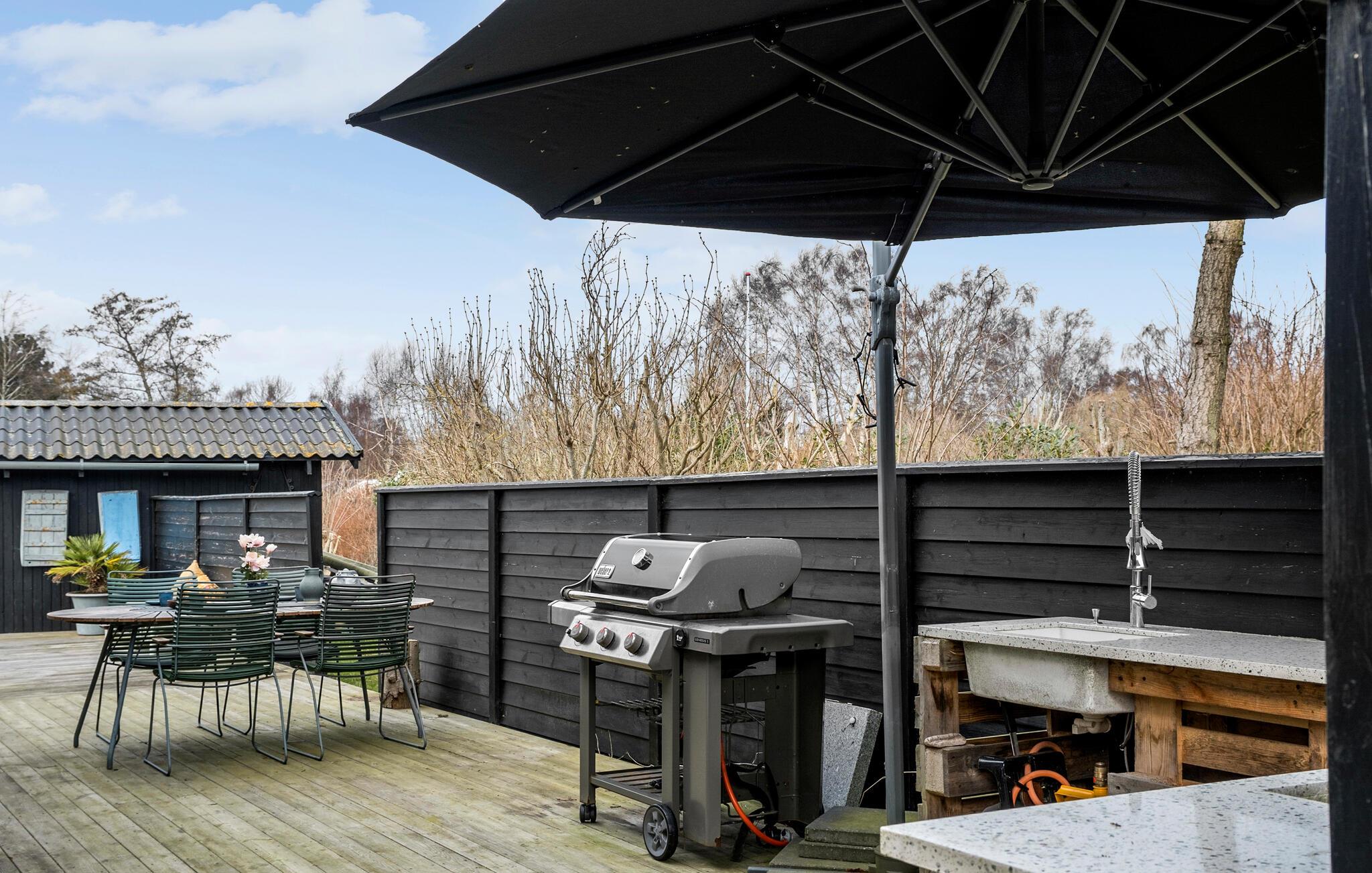 Buiten kun je ontspannende uren doorbrengen op het grote houten terras met barbecue, gezellige zitjes en ligstoelen. Geniet van ontspannen barbecue-avonden, speel buiten een spelletje biljart of organiseer spannende Kubb-wedstrijden in de tuin. Een gezellige open haard in de tuin nodigt uit om de dag samen af te sluiten.