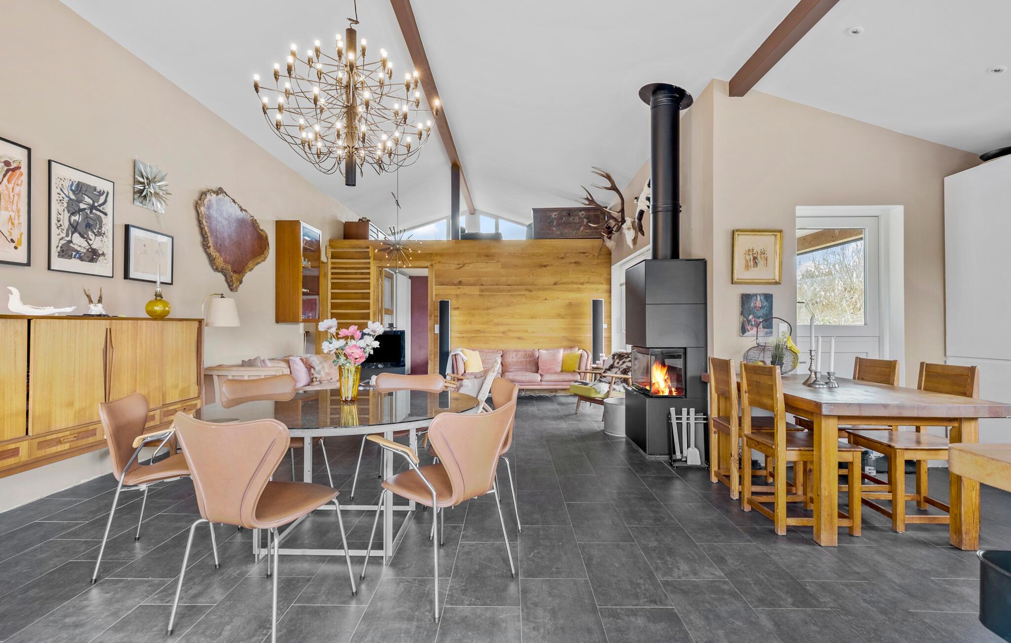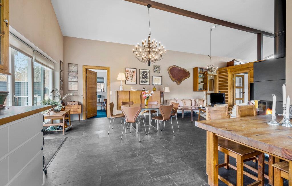 Verheug je op een heerlijke tijd met familie of vrienden in dit gezellige vakantiehuis op een idyllisch eiland. Binnen in het huis vind je een stijlvol ingerichte woonkamer. Knus bij de knisperende houtkachel of geniet van je maaltijden in de ruime keuken met eethoek, die uitnodigt om samen te koken. De ruime woonkamer met comfortabele zithoek biedt voldoende ruimte om spelletjes te spelen of in alle rust te lezen met het hele gezin.