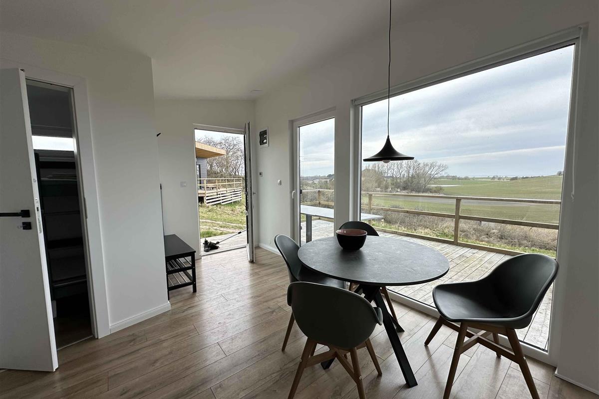 Knus tiny house op Sejerø met panoramisch uitzicht en natuurbeleving, perfect voor rustzoekers.