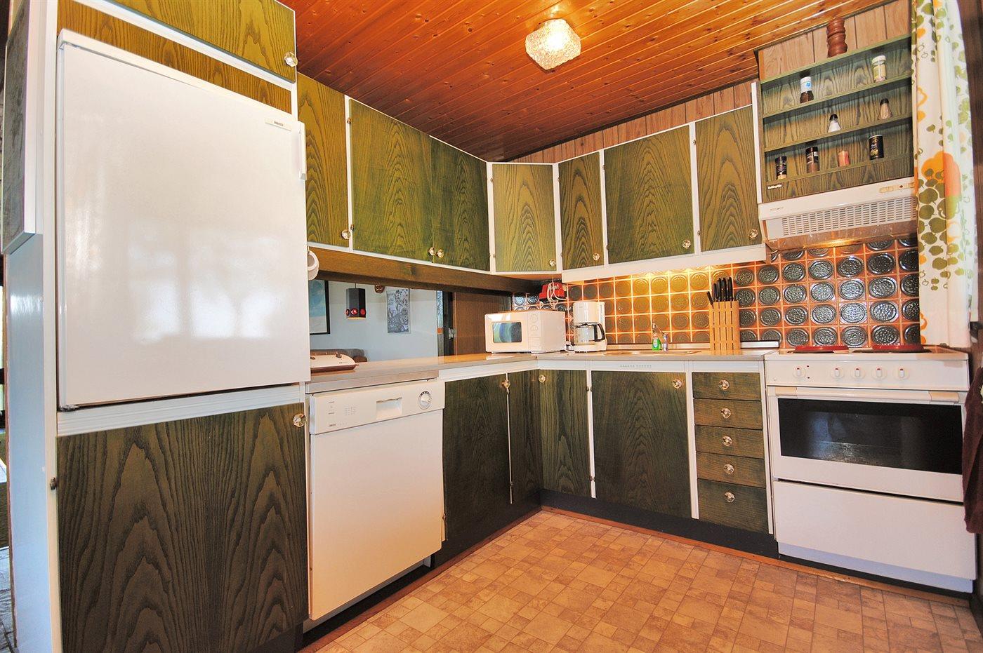 De keuken is uitgerust met koelkast Er is 4 elektrische kookplaten, bakoven, magnetron en vaatwasser.