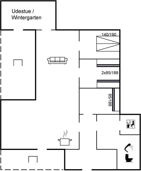 Er is 1 badkamer met douchehok en 1 toilet. De sauna biedt de gelegenheid tot ontspanning.