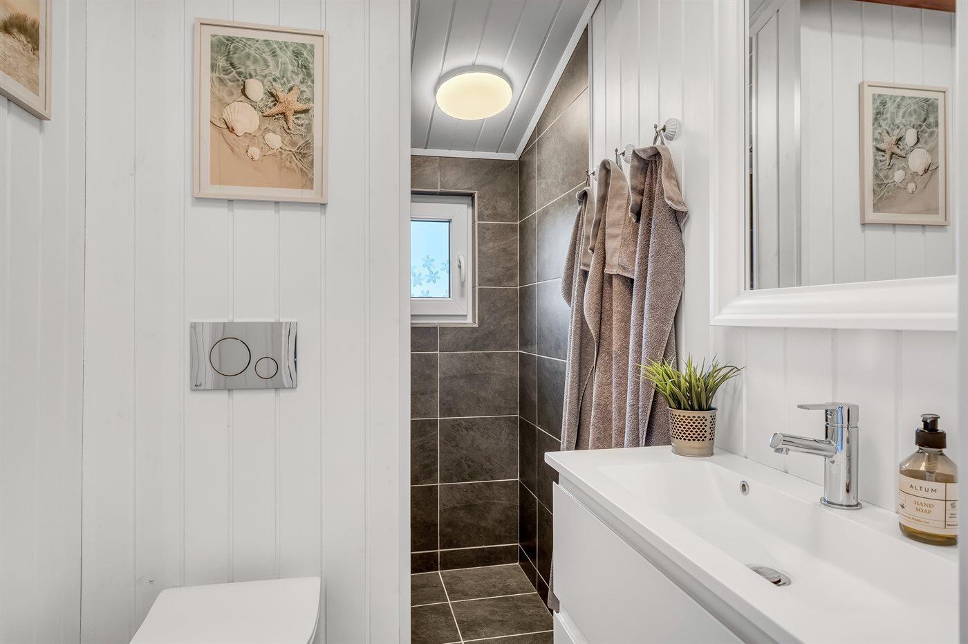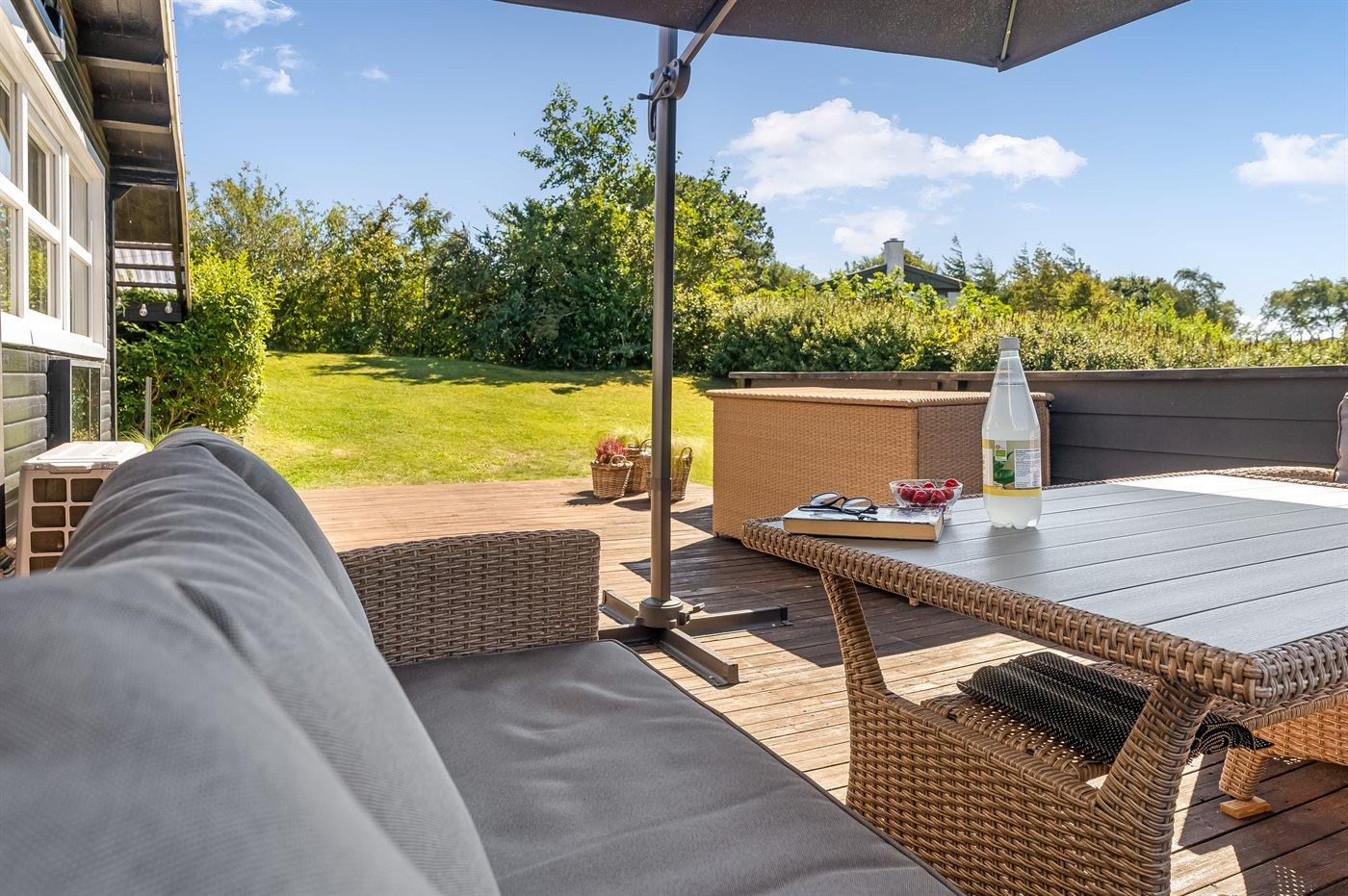 De vakantiewoning is gelegen op een 839 m² groot aangelegde tuin. Afstand tot de fjord 500 m. Dichtstbijzijnde winkel 3000 m. Er is een golfbaan op een afstand van 10000 m. Bij de vakantiewoning hoort terras. Daarnaast is er een overdekt terras. Afstand tot speelplaats 500 m. Barbecue. Parkeerplaats bij het huis.