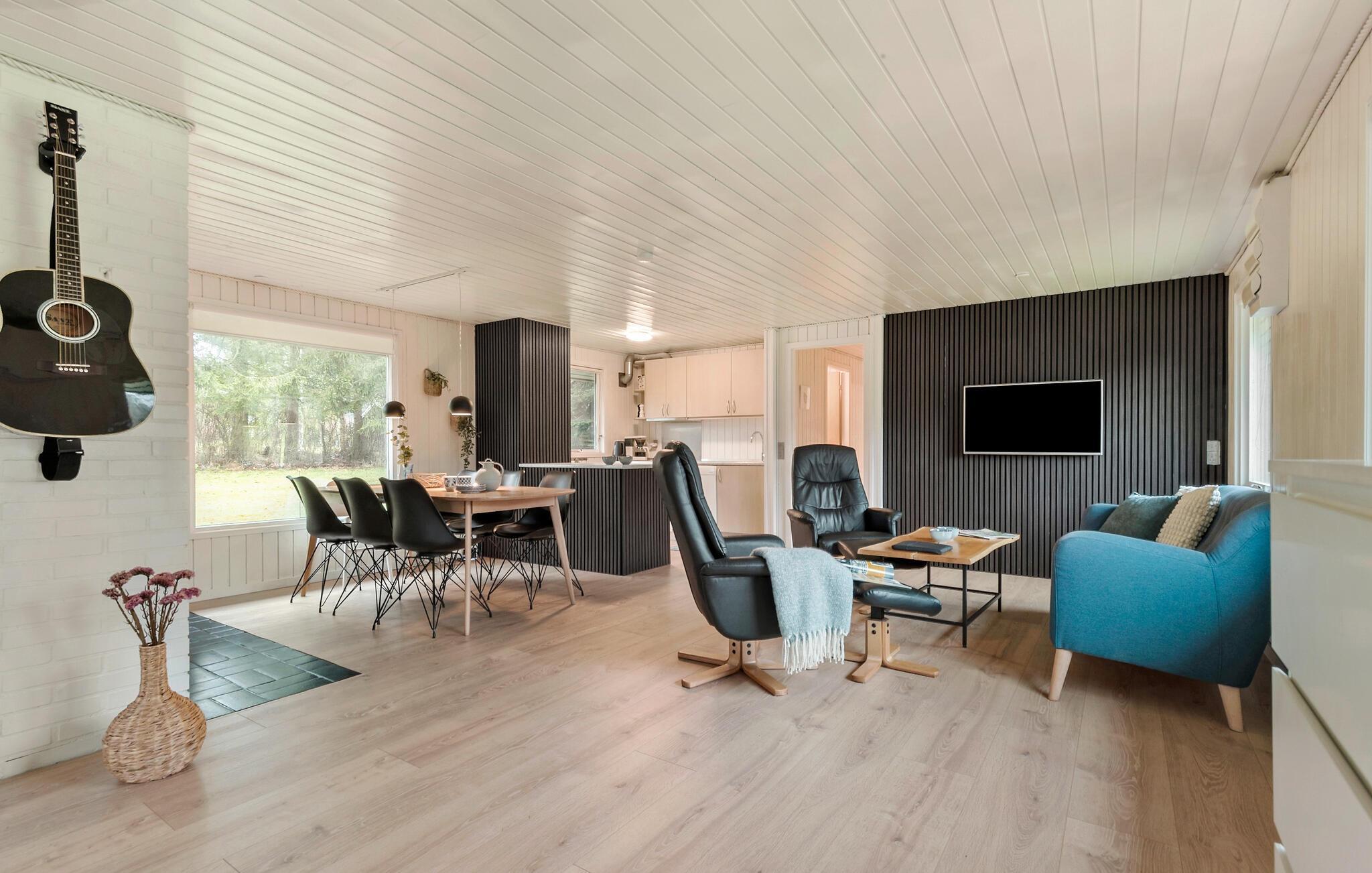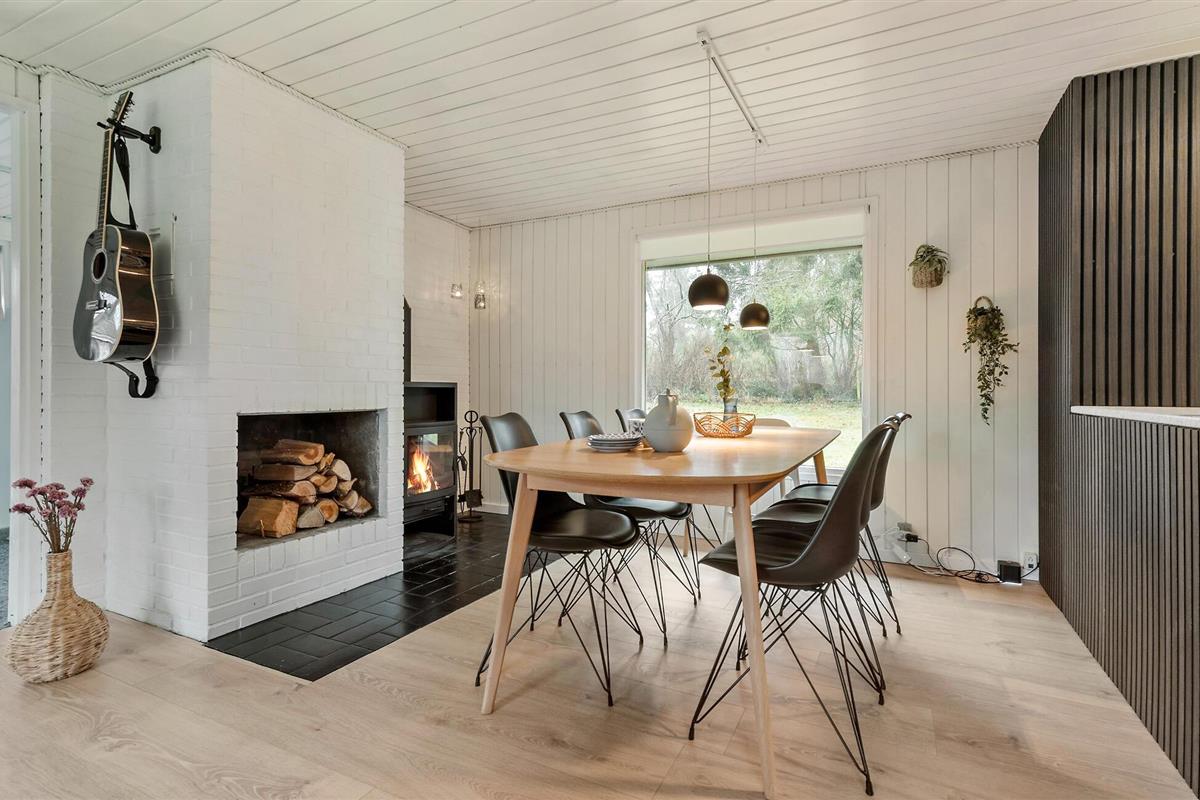 Stap binnen in dit liefdevol ontworpen vakantiehuis en maak het jezelf comfortabel in het stijlvolle interieur met warme houten elementen. Serveer stevige maaltijden in de uitnodigende eethoek en steek 's avonds de houtkachel aan om bordspellen te spelen of een film te streamen in de gezellige sfeer van de woonkamer.