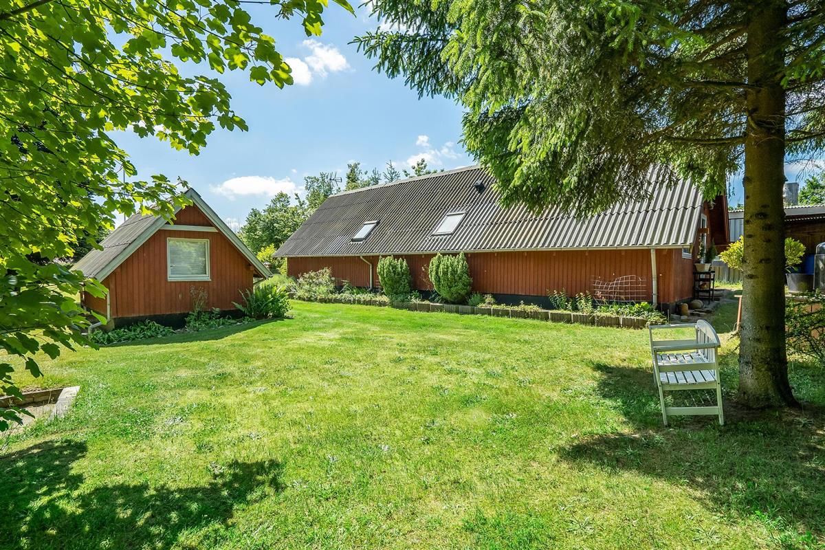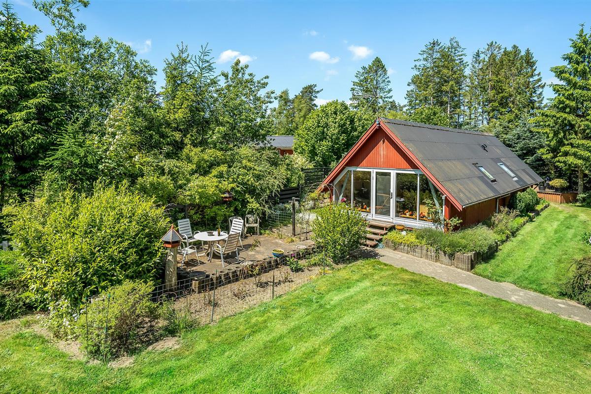 Ontspan in een eenvoudig vakantiehuis met houtkachel en terras, omgeven door natuur in Selkær Mølle.