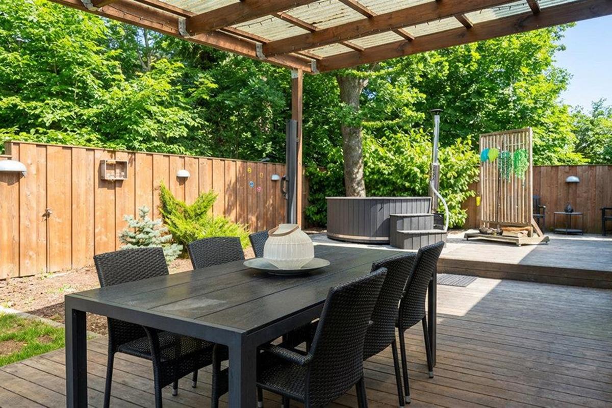 De groene tuin nodigt je op elk moment uit om te vertoeven, of het nu voor een duik in het Finse houten bad is, een ontbijt in de zon of een gezamenlijke barbecue-avond.