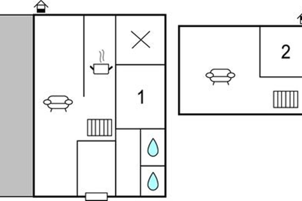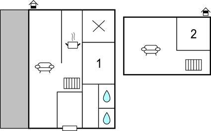 Woonkamer met open keuken - 2 Slaapplaatsen. (Matras).