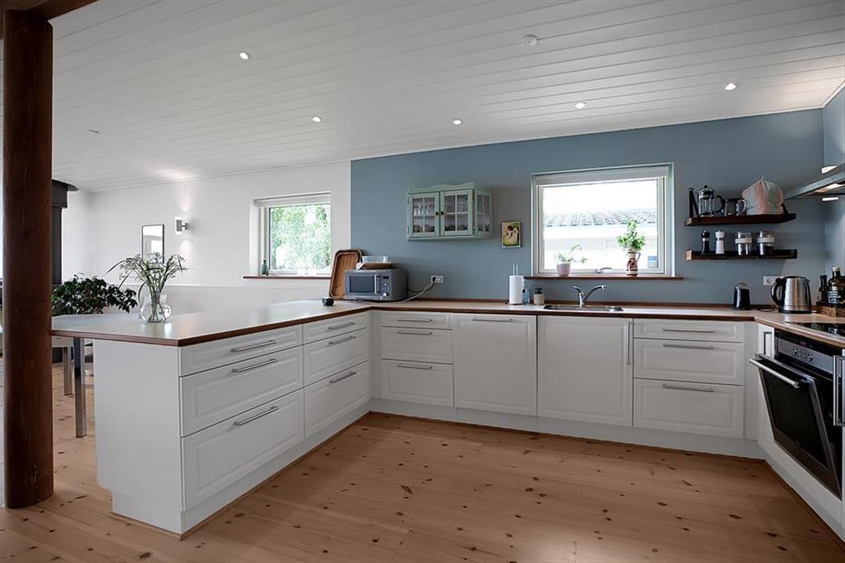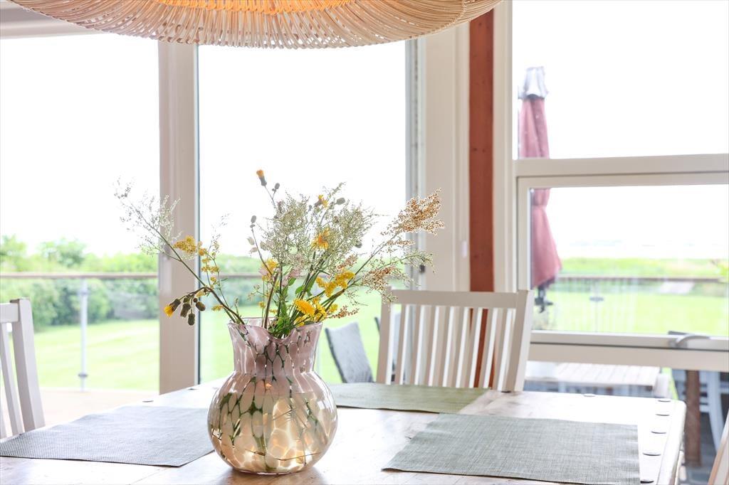 Im Ferienhaus befindet sich ein wunderschönes Wohnzimmer mit Kamin. Hier können Sie sich ganz entspannt in ein gutes Buch vertiefen und die Zeit vergessen. Der Wohnbereich ist mit der modernen, offenen Küche kombiniert. Die große Küche bietet ausreichend Platz für gemütliche Kochabende und verfügt unter anderem über einen Ceranfeldherd, eine Kühl-/Gefrierkombination und einen Geschirrspüler. Die zwei guten Schlafräume sind allesamt mit Doppelbetten ausgestattet und das dritte mit eine Doppelstockbett. Das Badezimmer ist sehr schön. Im Hauswirtschaftsbereich stehen Ihnen eine Waschmaschine und ein Trockner zur Verfügung. Viele Möglickeiten von Aktivitäten z.B. Tischtennis und Boccia.
