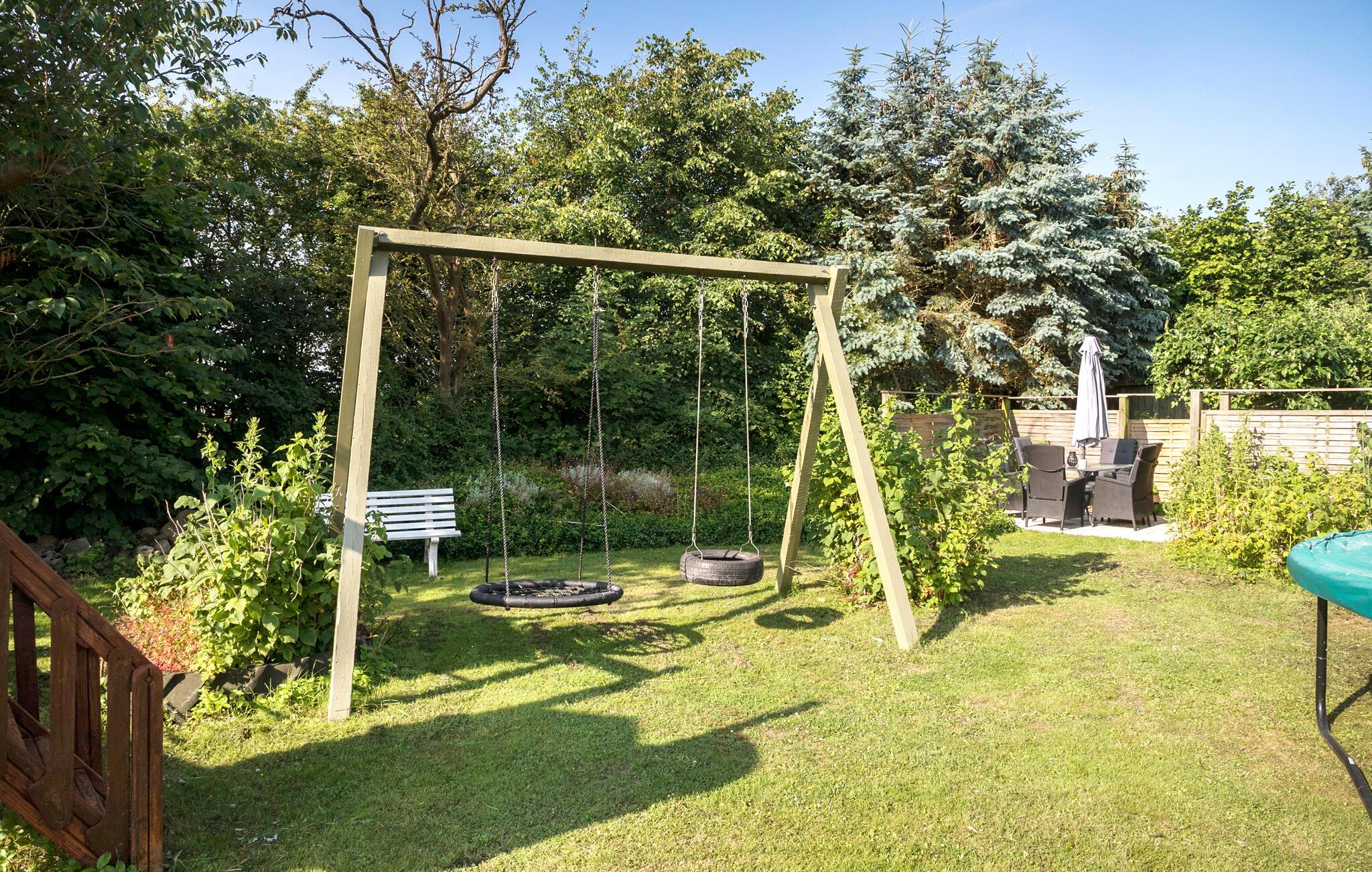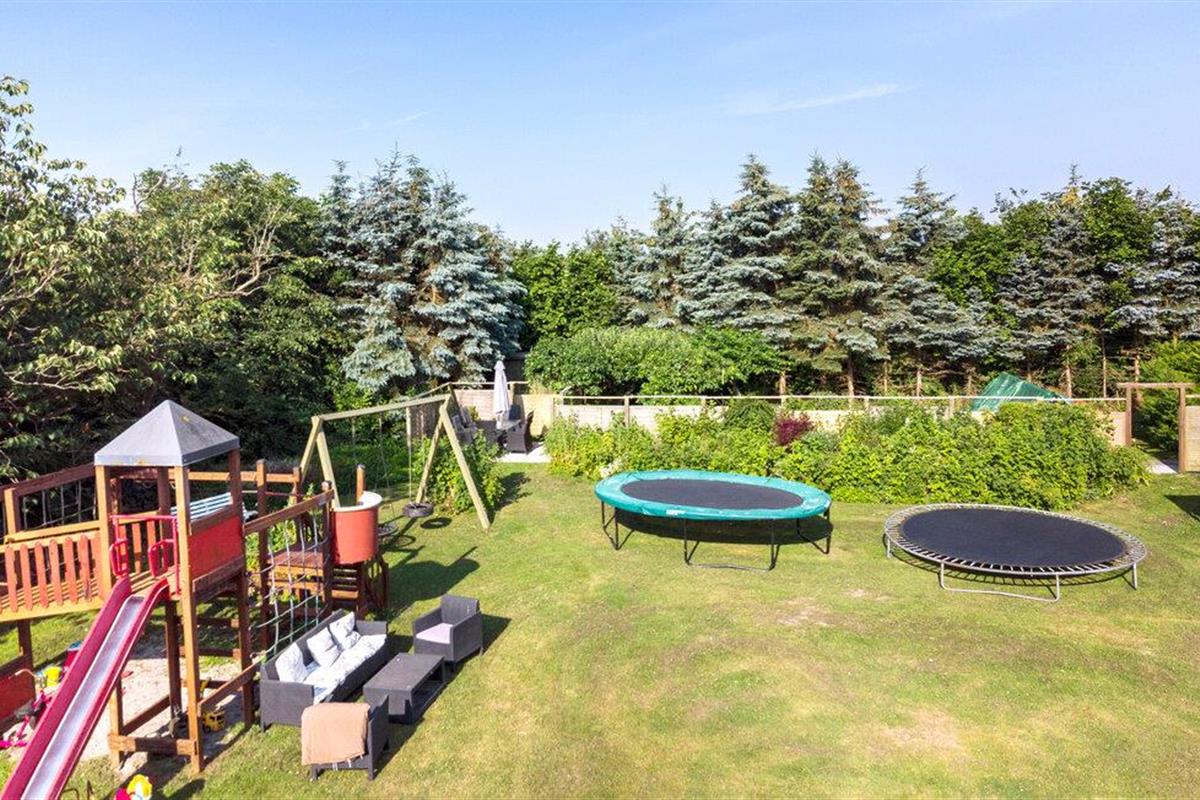 De buitenruimte is een echte speeltuin voor jong en oud. Speel een potje voetbal met het hele gezin en kijk hoe je kinderen spelen in de speeltuin en stuiteren op de trampoline.